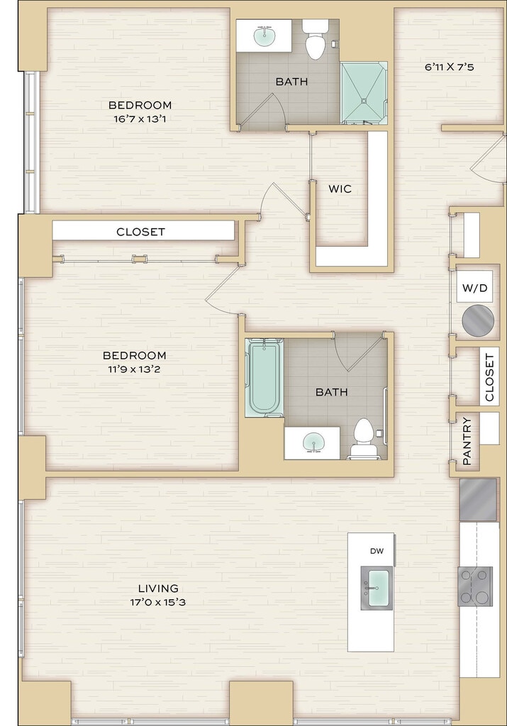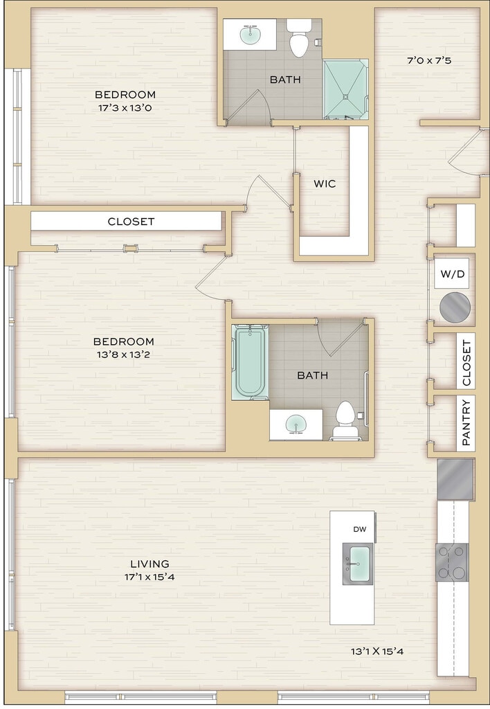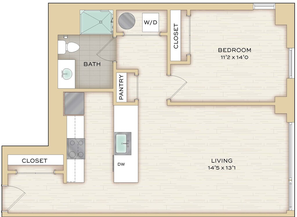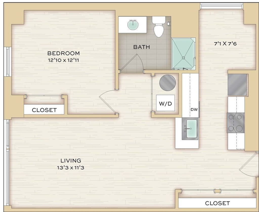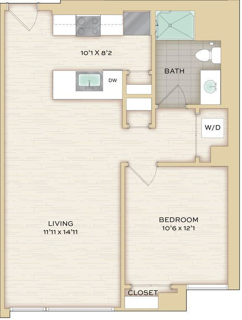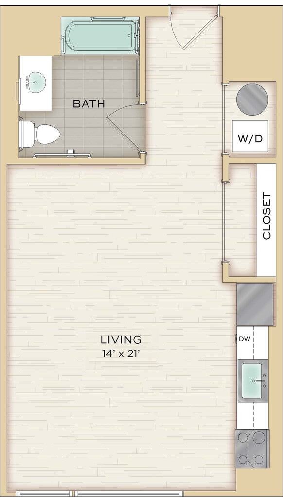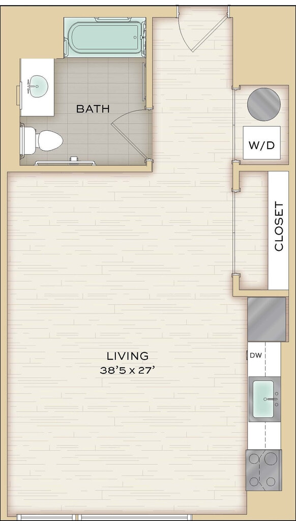Herringbone - Imagen Unidad de apartamento: 712Modelo de apartamento: Herringbone$2,342Estudio, 1 Baño, 574 sq ftDisponible August 8, 2026Chenille