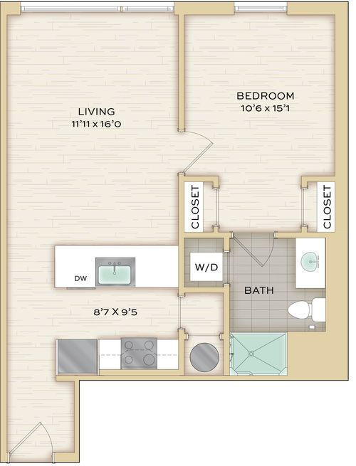Estudio, 1 Baño, 517 pies²Galería del Modelo