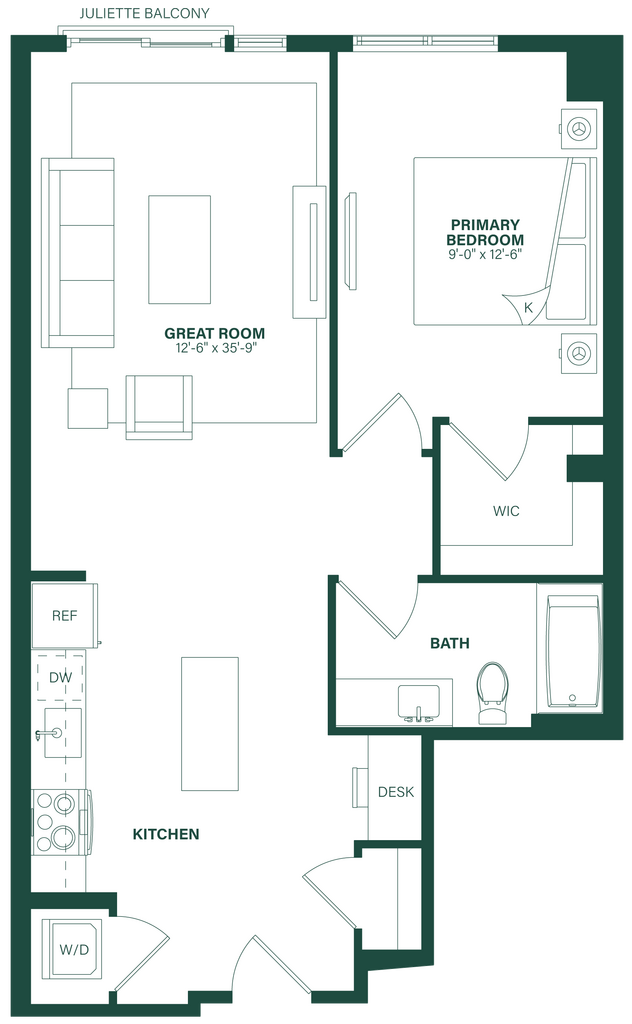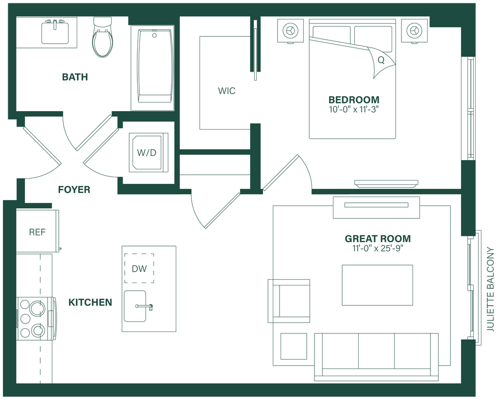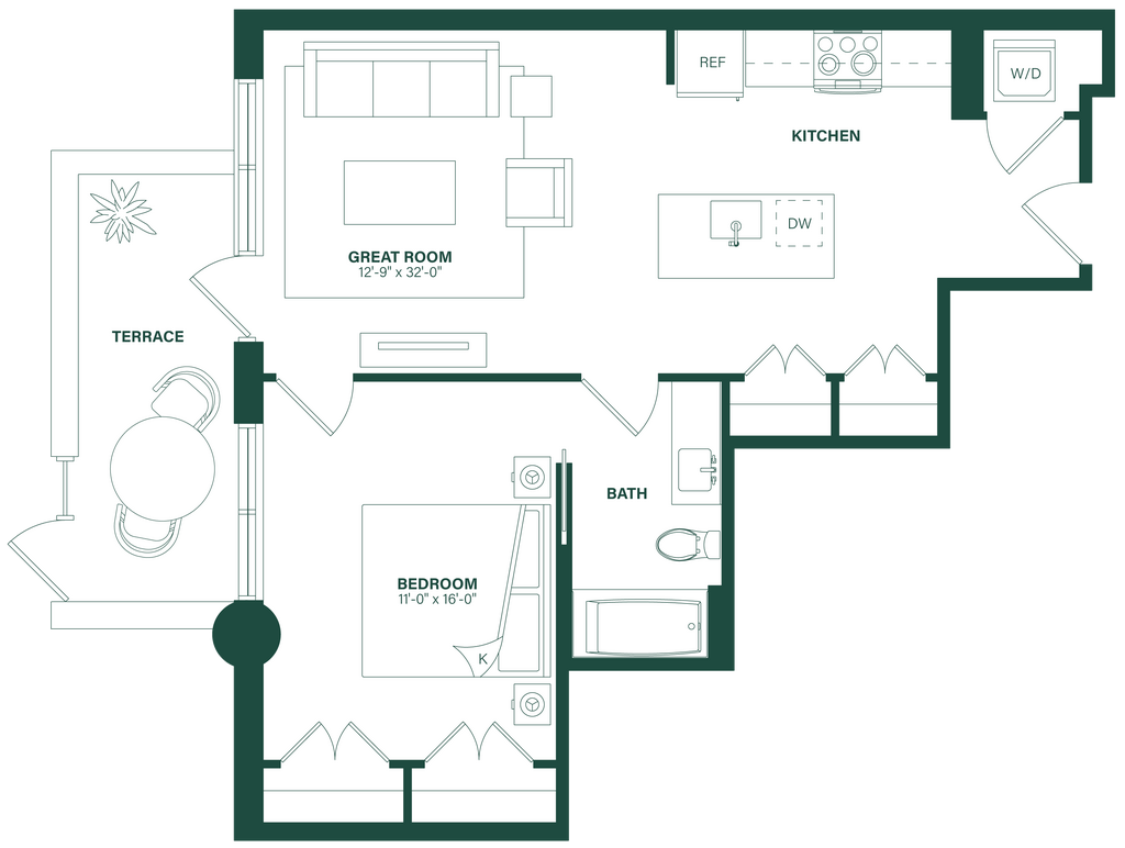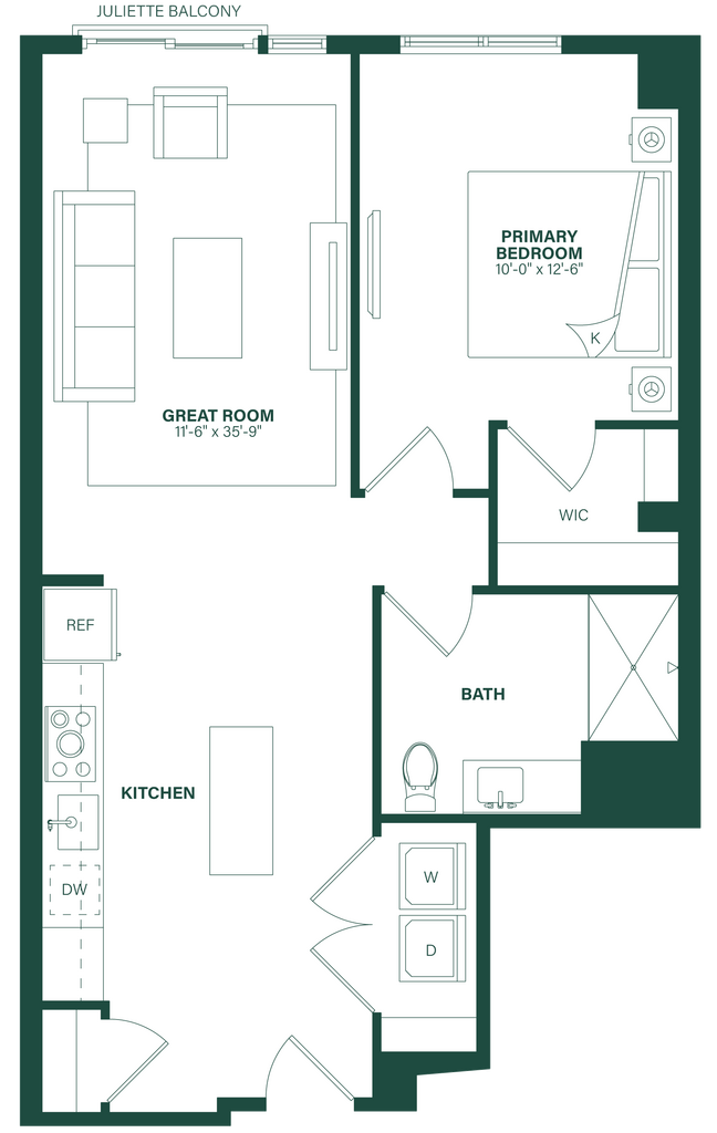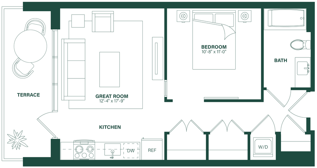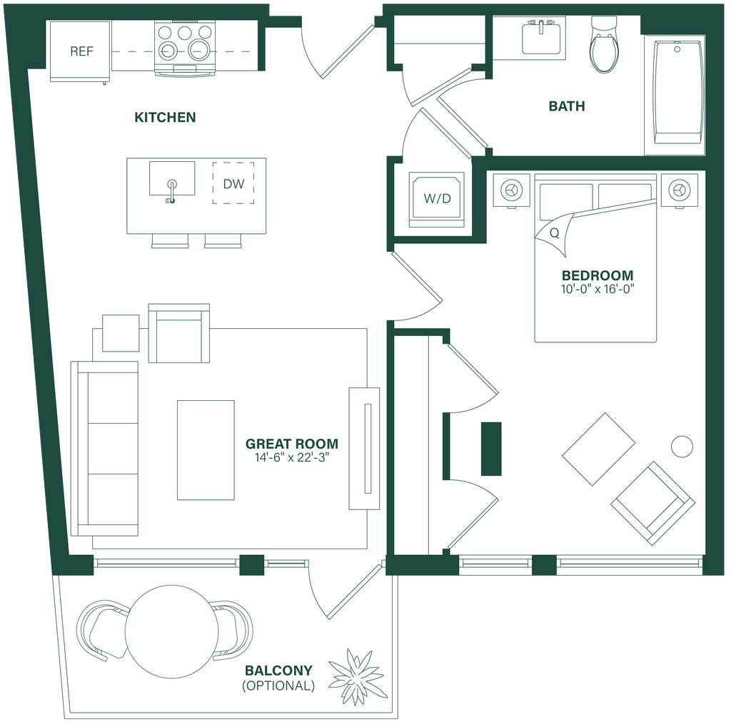 1 Dormitorio, 1 Baño, 548-606 pies²Más CargosDisponible May 15Galería del Modelo