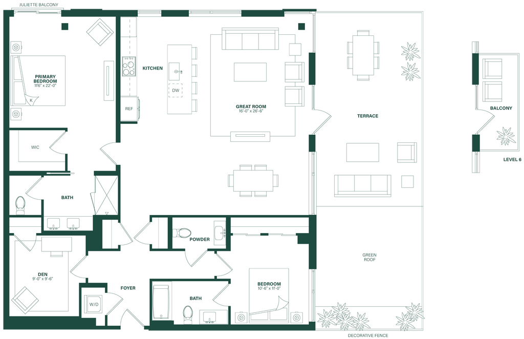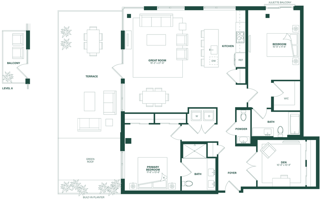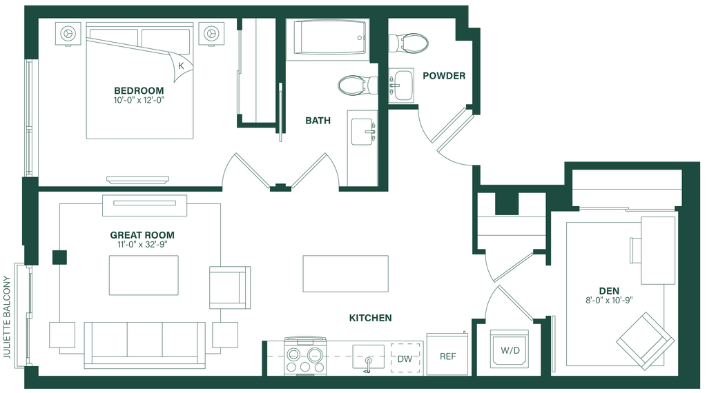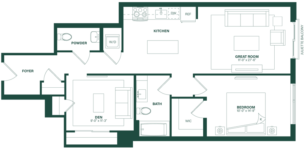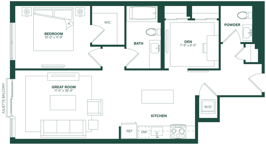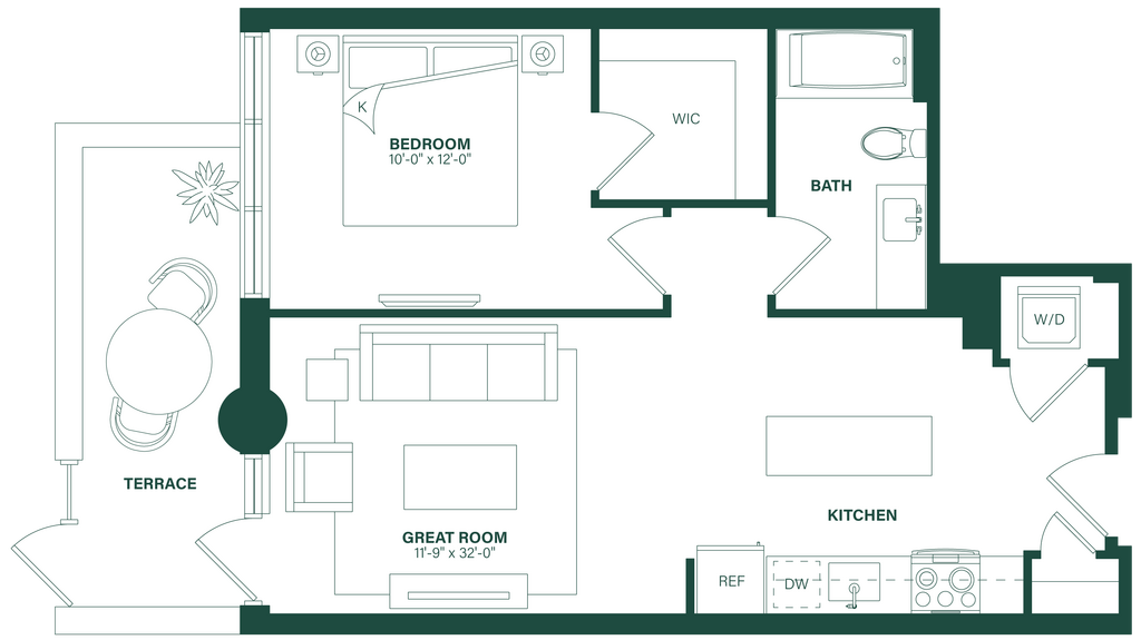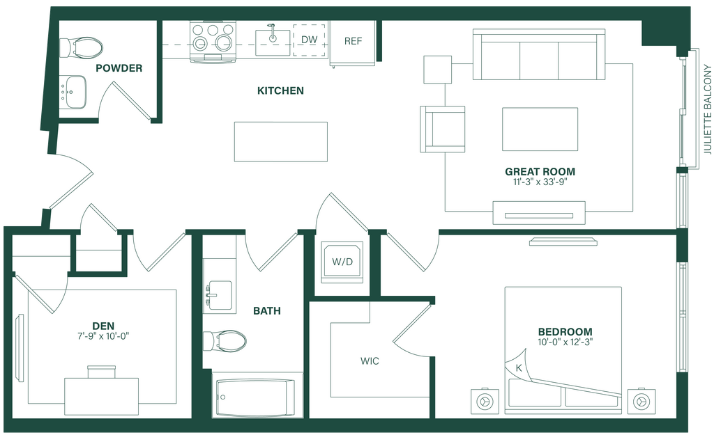 1 Dormitorio, 1 Baño, 548-606 pies²Más CargosDisponible May 15Galería del Modelo