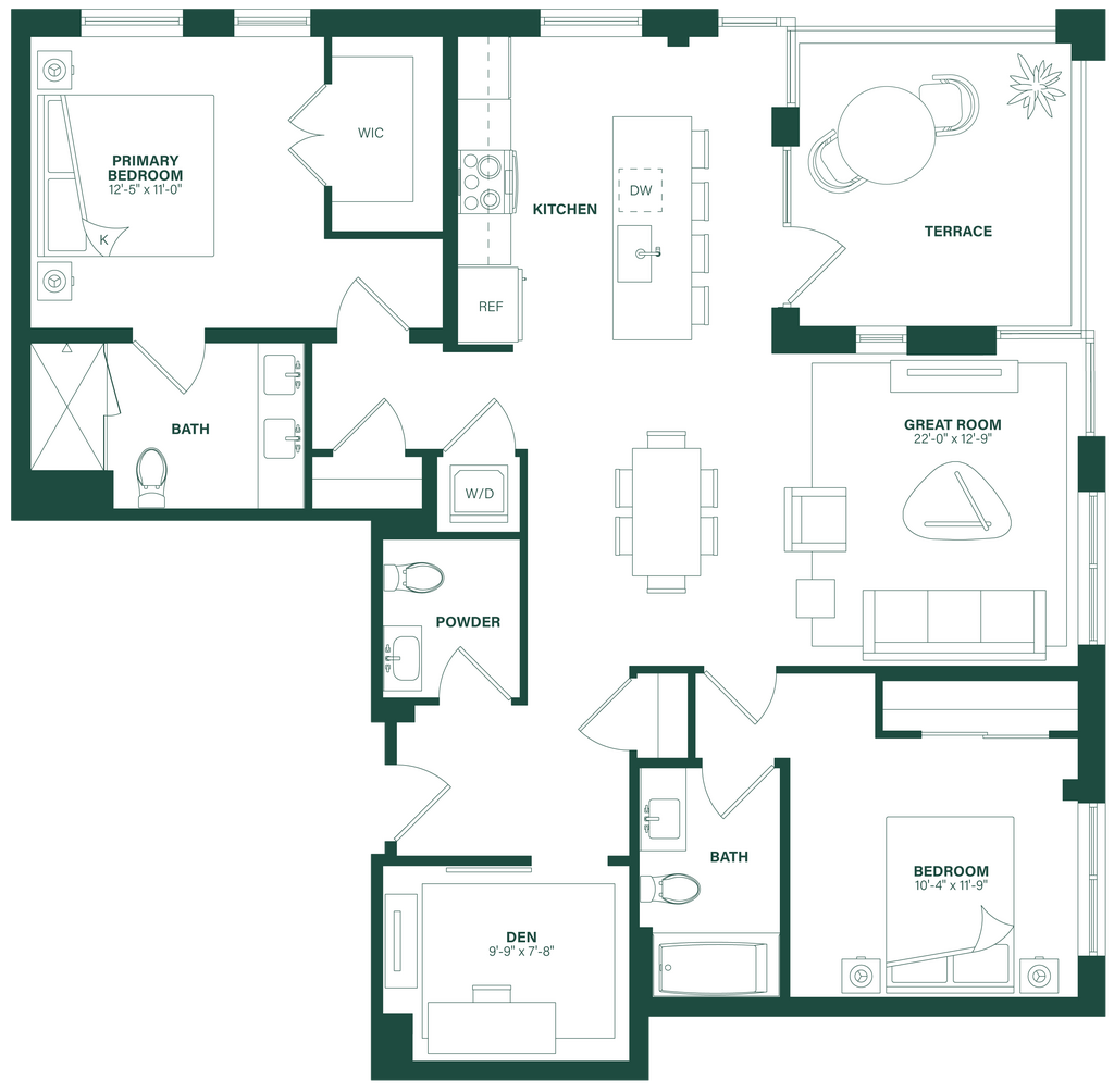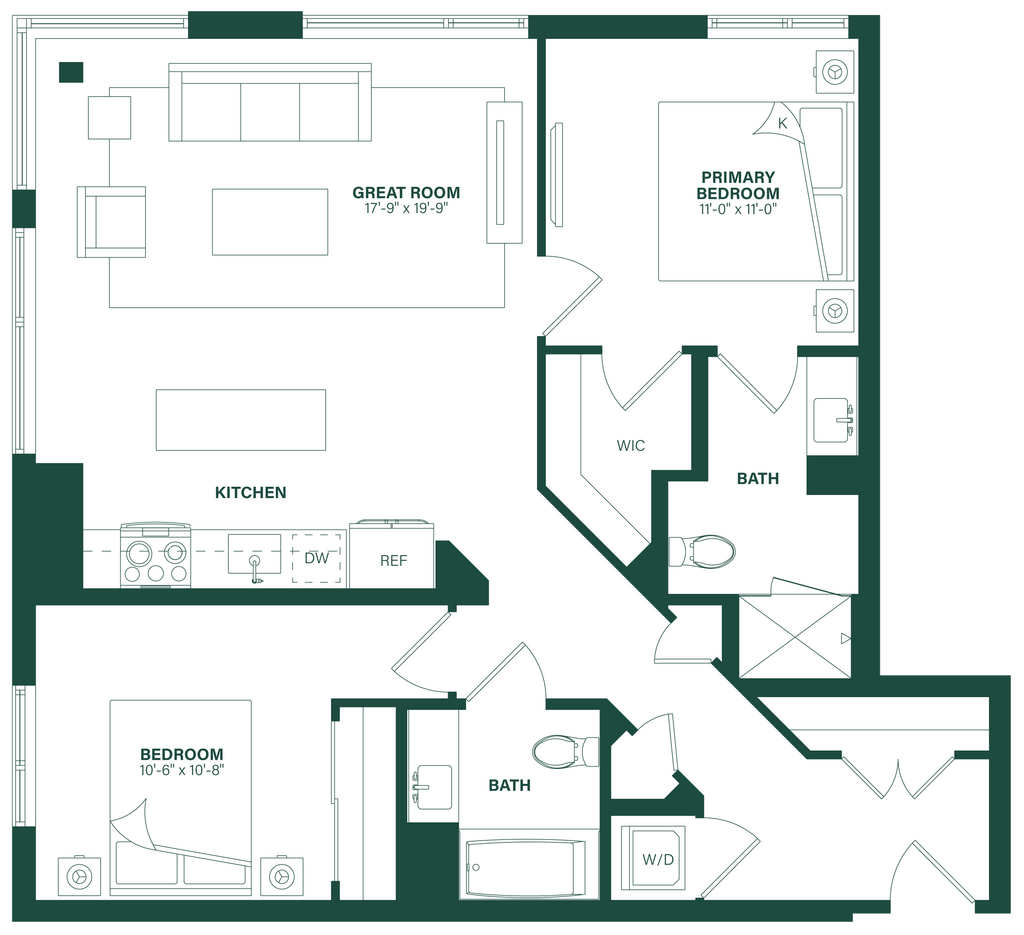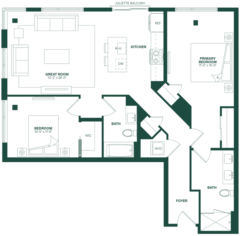 Modelo de apartamento: 1 Bed/1 Bath-J1ADesde $2,4001 Dormitorio, 1 Baño, 549-606 sq ftDisponible April 22, 2026![]()