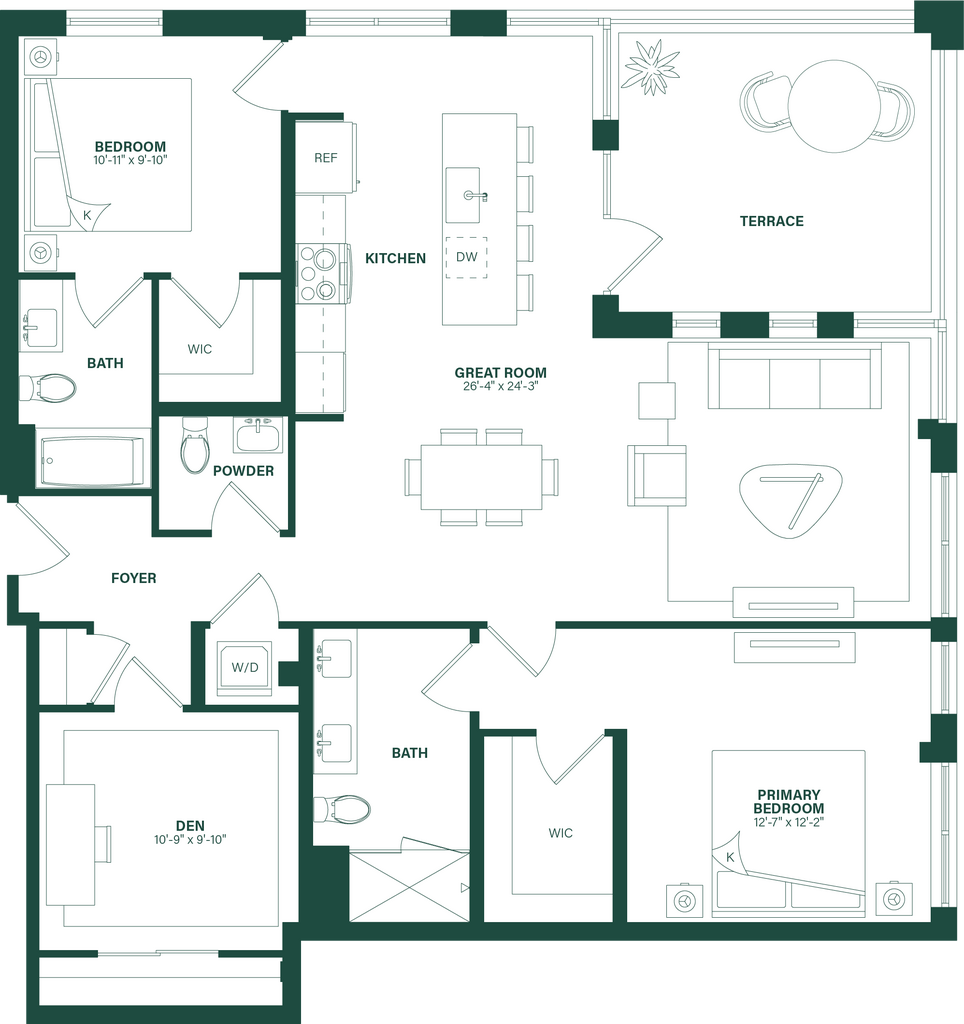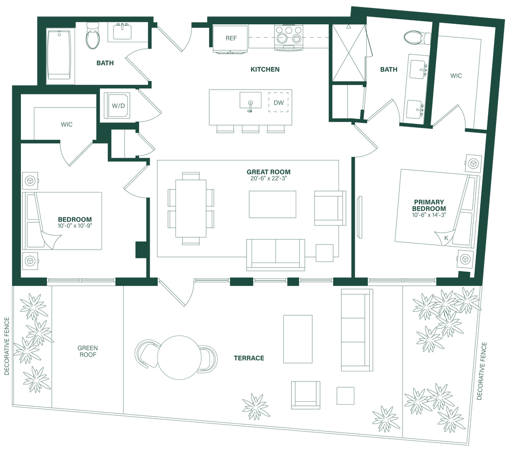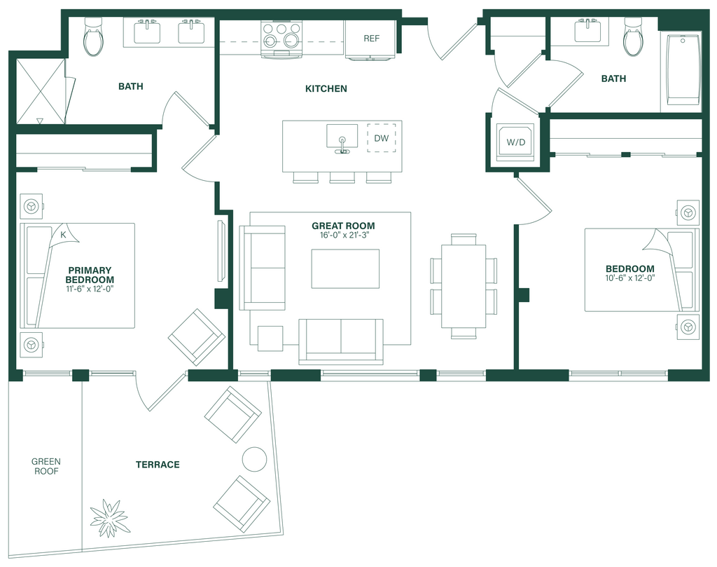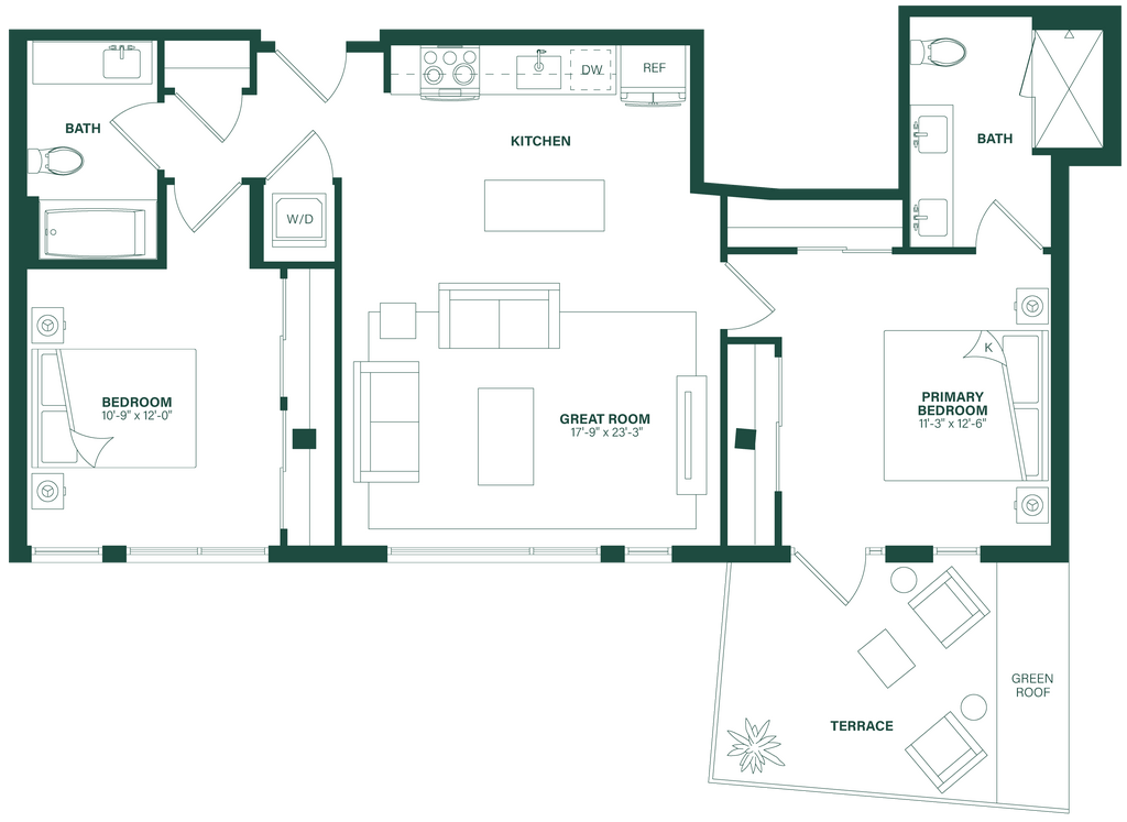 Modelo de apartamento: 1 Bed/1 Bath-J1ADesde $2,4001 Dormitorio, 1 Baño, 549-606 sq ftDisponible April 22, 2026![]()