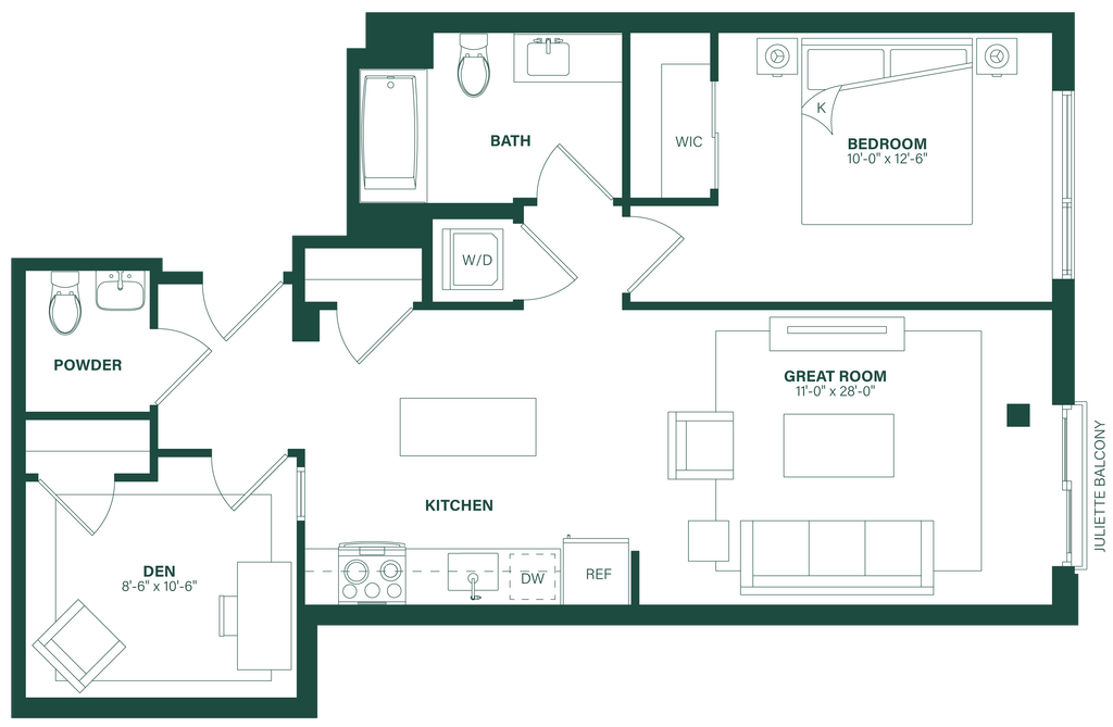 1 Dormitorio, 1 Baño, 549-606 pies²Más CargosDisponible Apr 22Galería del Modelo