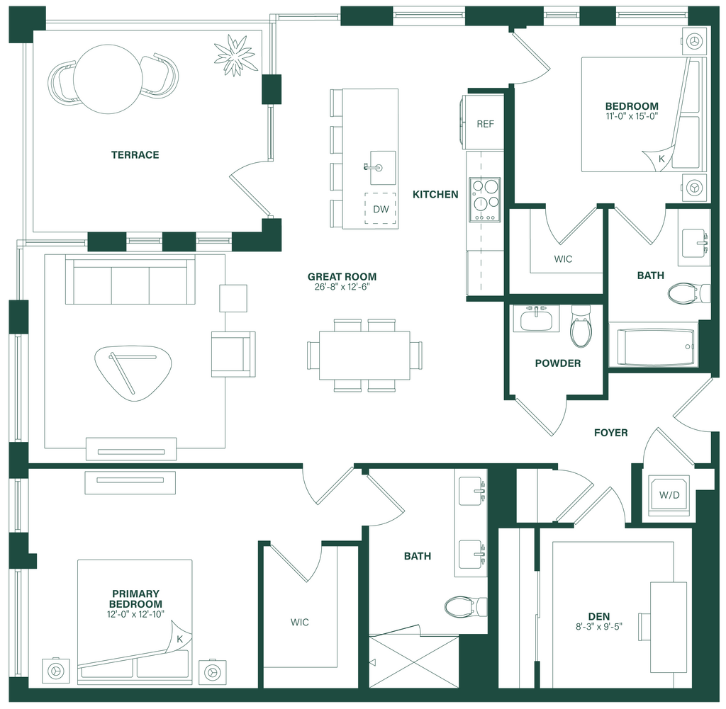 Modelo de apartamento: 1 Bed/1 Bath-J1BDesde $2,4001 Dormitorio, 1 Baño, 548-606 sq ftDisponible May 15, 2026![]()