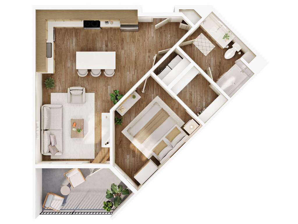 1 Dormitorio, 1 Baño, 679 pies²Disponible AhoraGalería del Modelo