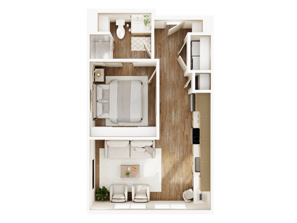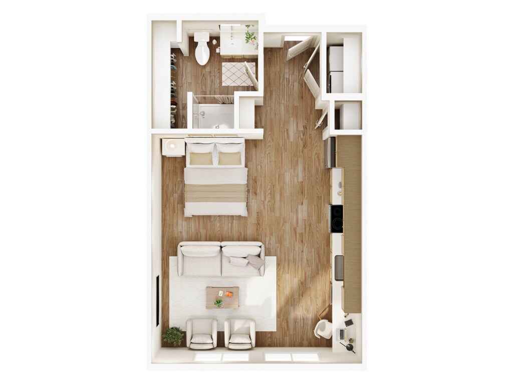 Estudio, 1 Baño, 520-524 pies²Disponible AhoraGalería del Modelo