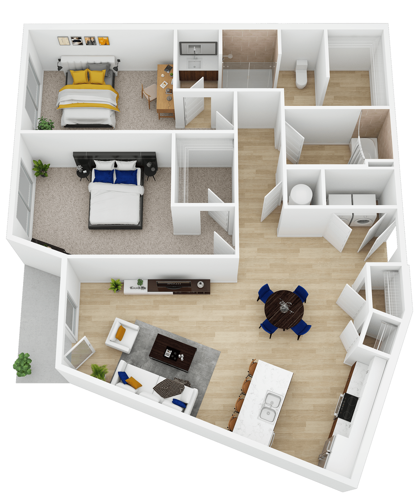 Modelo de apartamento: The Delta IIDesde $1,3501 Dormitorio, 1 Baño, 717 sq ftDisponible Ahora![]()