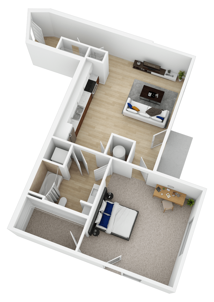 1 Dormitorio, 1 Baño, 717 pies²Disponible AhoraGalería del Modelo