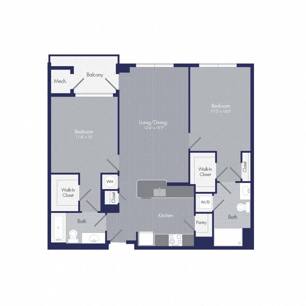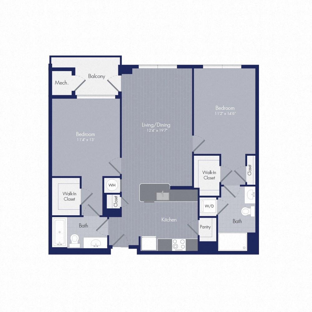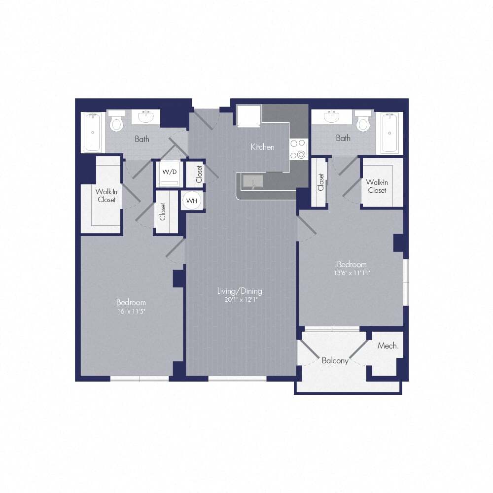 Modelo de apartamento: Grayson A11Desde $1,8581 Dormitorio, 1 Baño, 1022 sq ftDisponible Ahora![]()