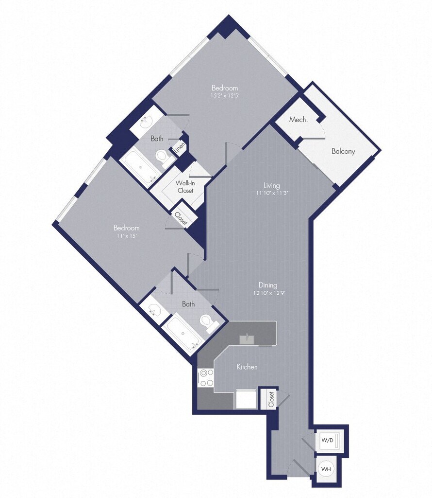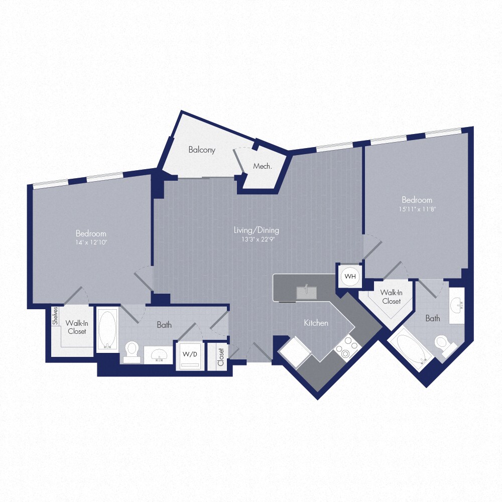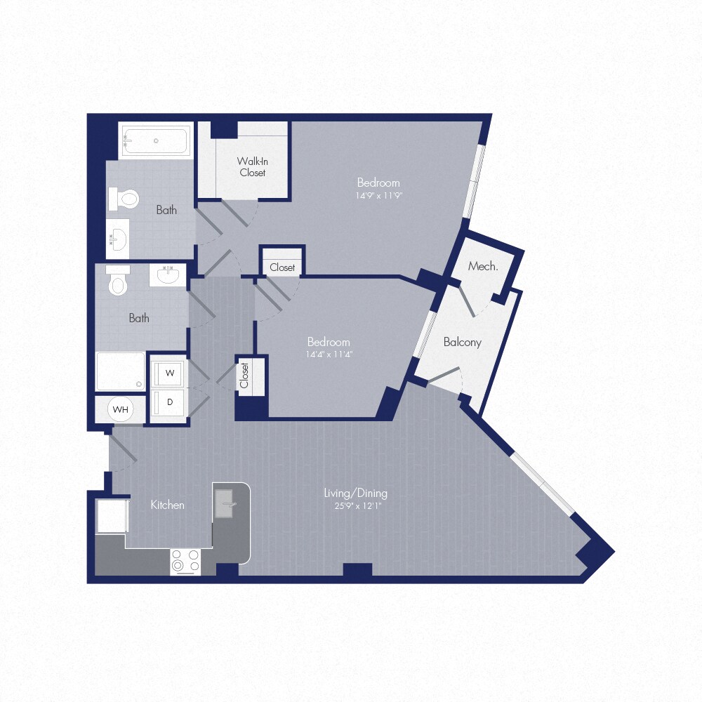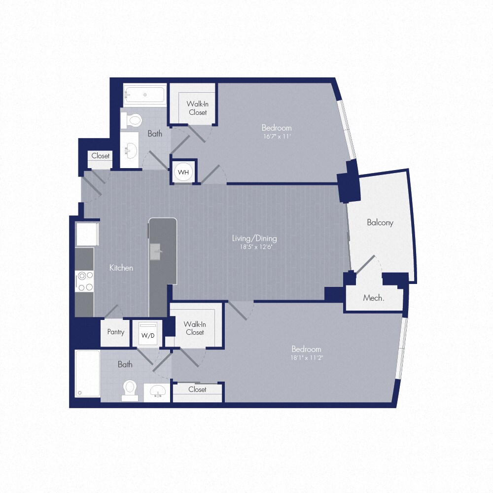 Modelo de apartamento: Grayson A11Desde $1,8581 Dormitorio, 1 Baño, 1022 sq ftDisponible Ahora![]()