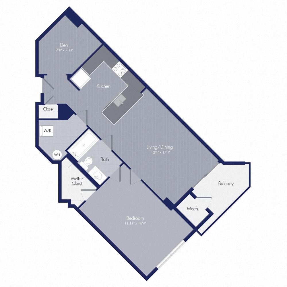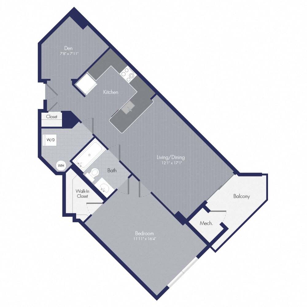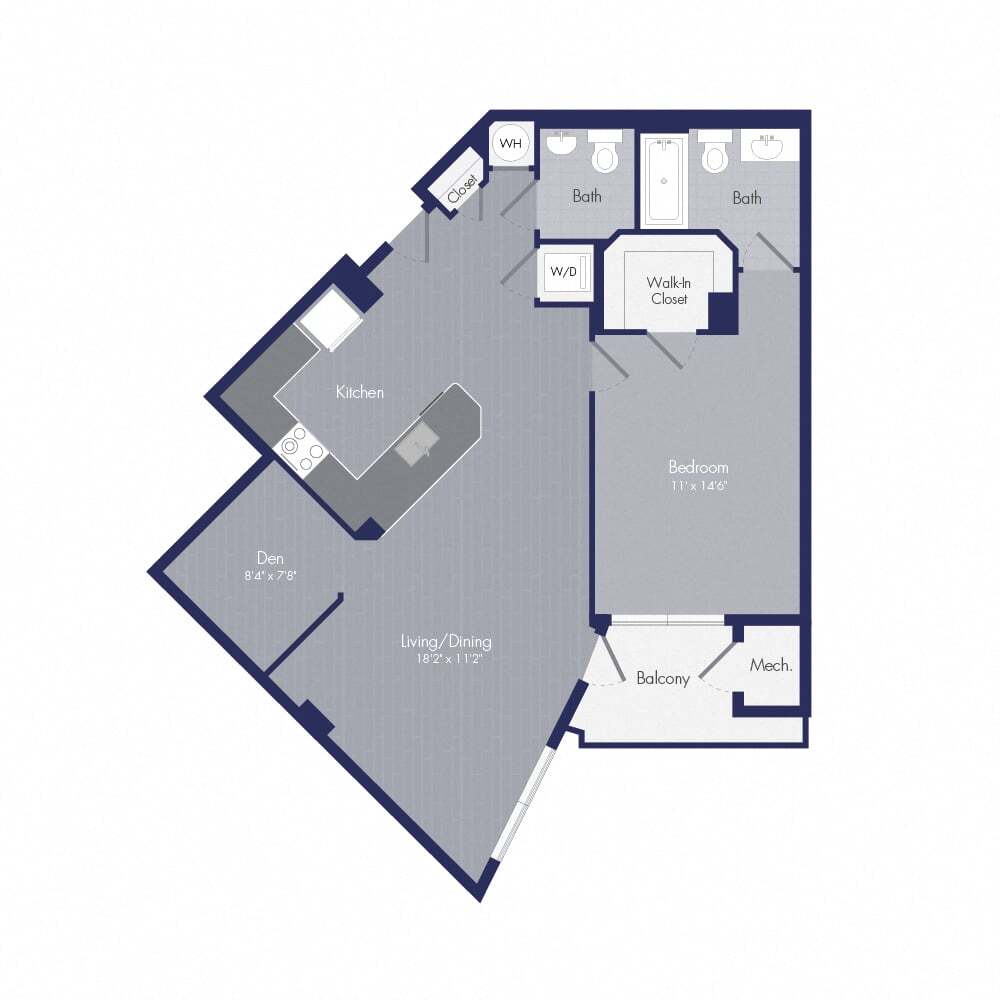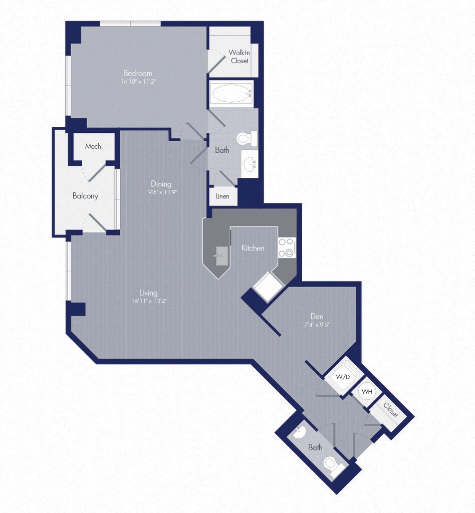 Linden A7 - Plano 1 Unidad de apartamento: 614Modelo de apartamento: Linden A7$1,9911 Dormitorio, 1 Baño, 803 sq ftDisponible AhoraGrayson A11P