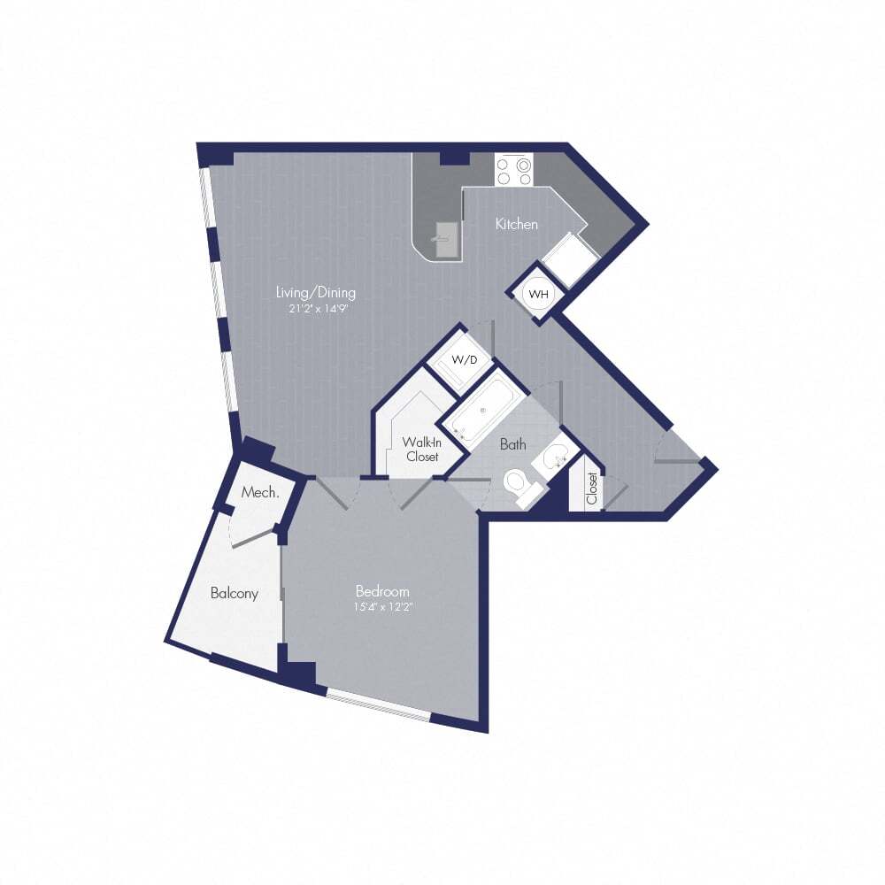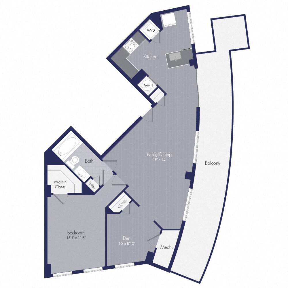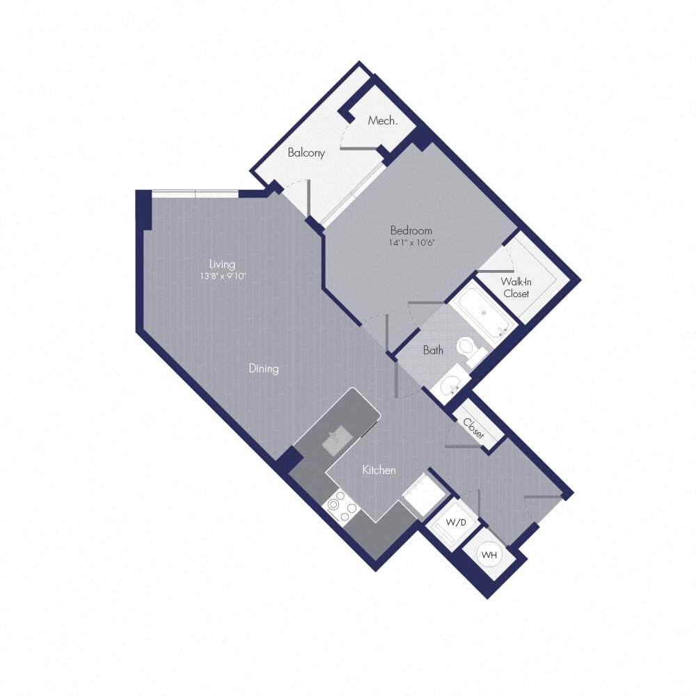 Linden A7 - Plano 1 Unidad de apartamento: 614Modelo de apartamento: Linden A7$1,9911 Dormitorio, 1 Baño, 803 sq ftDisponible AhoraGrayson A11P