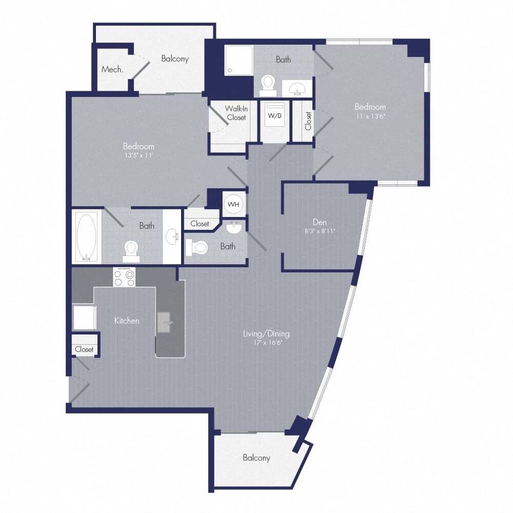 Modelo de apartamento: Grayson A11PDesde $2,0621 Dormitorio, 1 Baño, 993 sq ftDisponible Ahora![]()