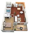 1 Dormitorio, 1 Baño, 765 pies²Galería del Modelo