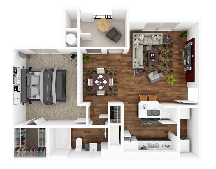 Modelo de apartamento: BrazosDesde $9991 Dormitorio, 1 Baño, 708 sq ftDisponible Ahora![]()