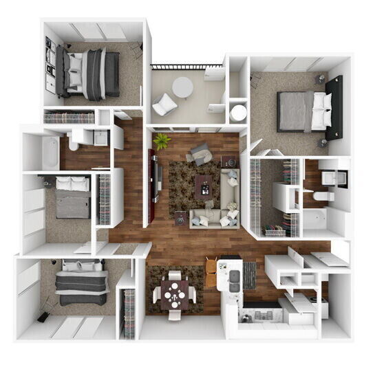 Modelo de apartamento: Nueces$2,2794 Dormitorios, 2 Baños, 1366 sq ftDisponible Ahora![]()
