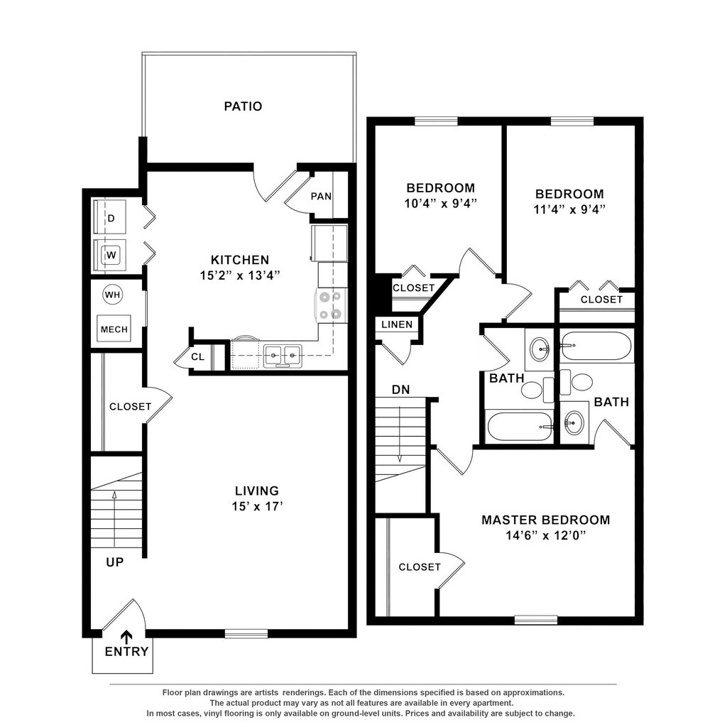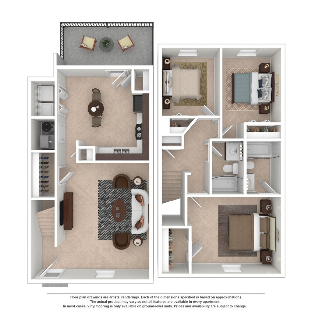 Modelo de apartamento: 3BRDesde $1,6553 Dormitorios, 2 Baños, 1315 sq ftDisponible Ahora![]()