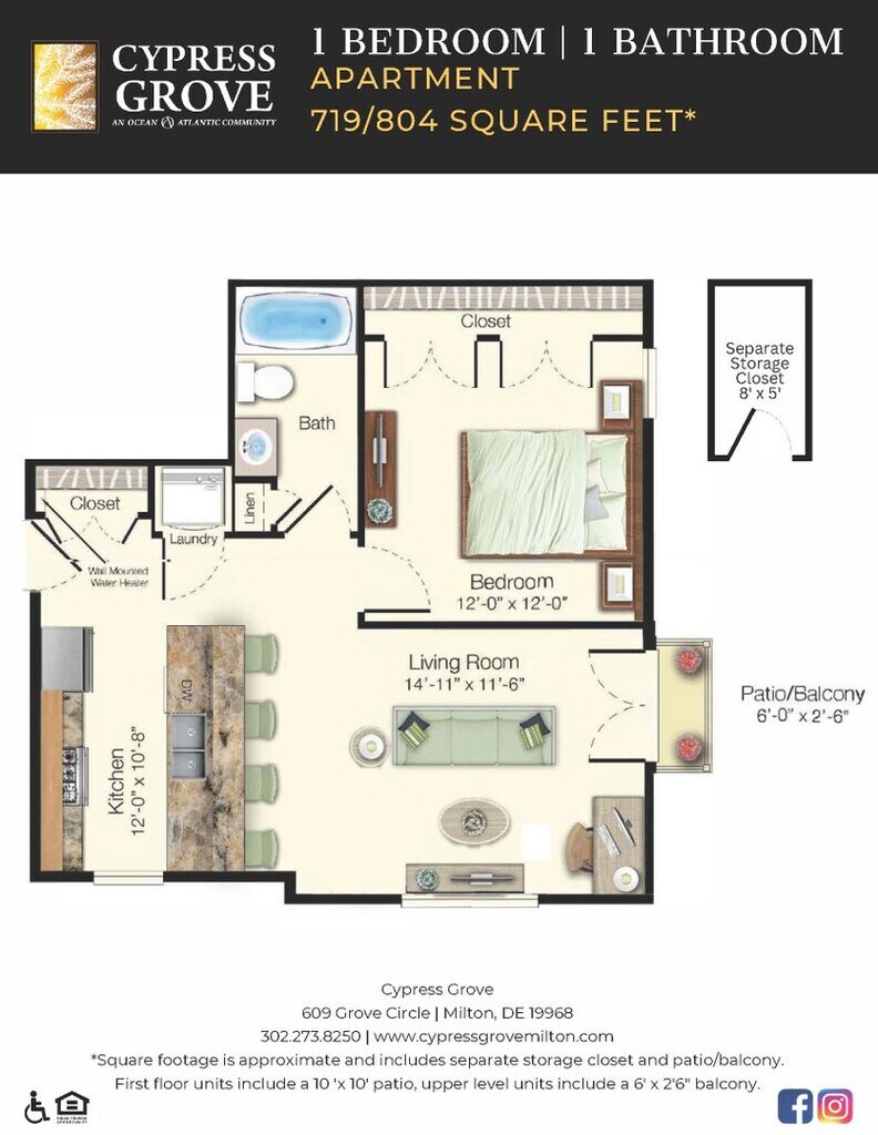 Modelo de apartamento: ATTAINABLE HOUSING at Cypress Grove (1BR/1BA)Desde $1,1401 Dormitorio, 1 Baño, 719 sq ftDisponible Ahora![]()