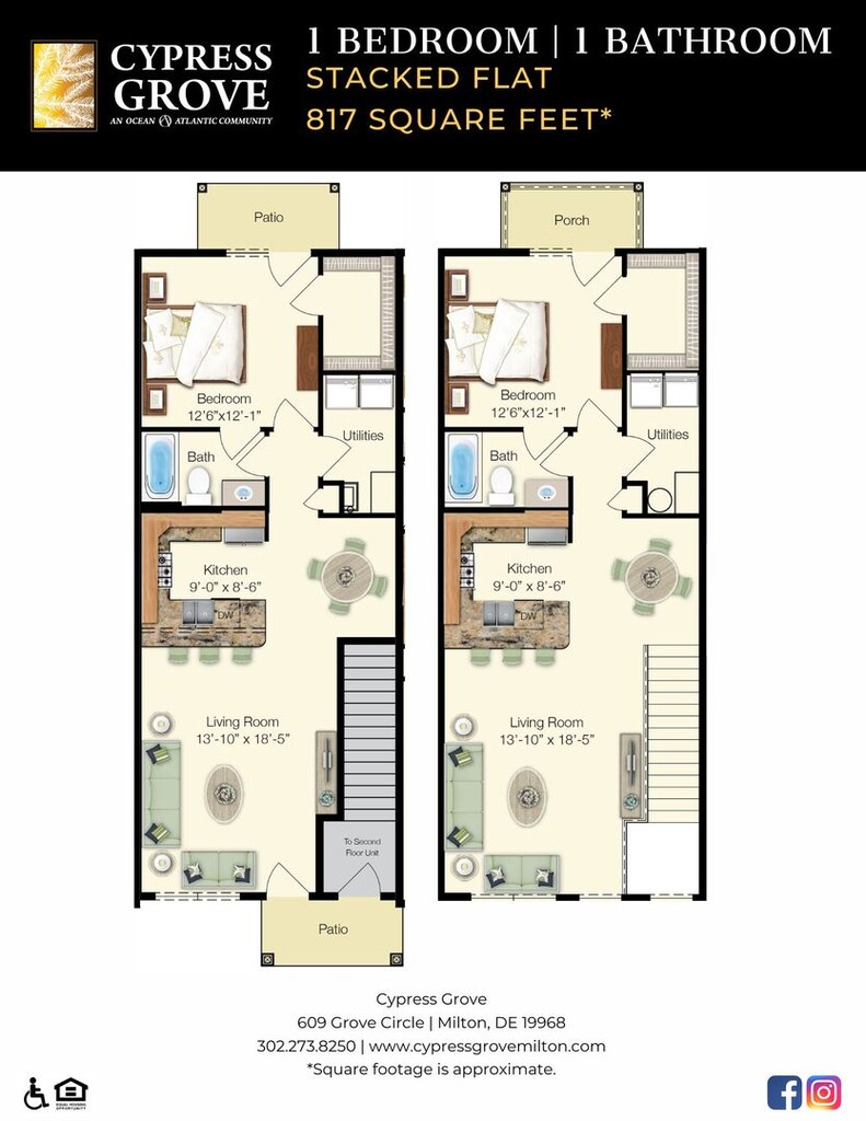 Stacked Flats at Cypress Grove (1BR/1BA) - Plano 2 2 Dormitorios