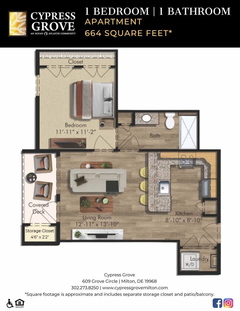 ¡Bienvenido a Cypress Grove! Ubicado en la famosa ciudad histórica de Milton, Delaware, este es el lugar perfecto para llamar hogar. ¿Buscas pasar el día en la playa? Milton está ubicado a una poca distancia en auto de Rehoboth Beach y Lewes. Estamos ubicados en el centro de todo lo que el condado de Sussex tiene para ofrecer. Cypress Grove ofrece edificios de apartamentos con acceso a ascensores y edificios de apartamentos apilados con varias opciones de planos de planta para garantizar que encontrarás la mejor opción para tu estilo de vida. Nuestro complejo cuenta con una casa club con un gimnasio, piscina al aire libre y oficina de arrendamiento. También tenemos un parque para perros planificado, juegos para niños y un jardín comunitario. Nuestros apartamentos cuidadosamente diseñados tienen ventiladores de techo, una lavadora/secadora y un patio/balcón. Ponte en contacto con nuestro personal de arrendamiento hoy mismo para obtener más información y reservar tu nuevo hogar en Cypress Grove.