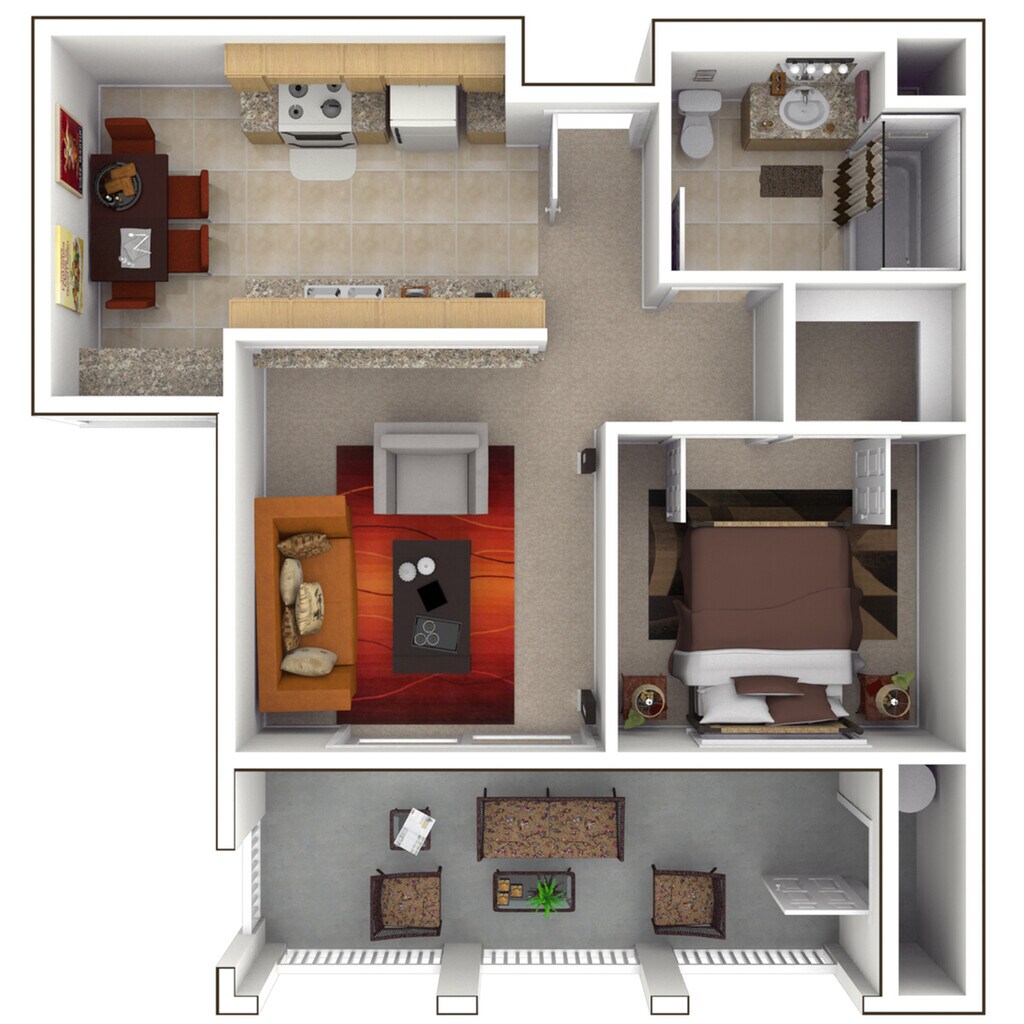 Modelo de apartamento: 1x1R$2,0701 Dormitorio, 1 Baño, 610 sq ftNo Disponible![]()