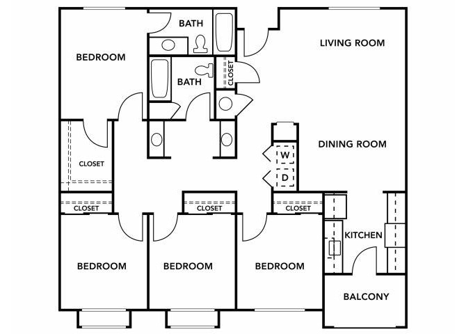 Modelo de apartamento: Four BedroomDesde $8254 Dormitorios, 2 Baños, 367-1468 sq ftDisponible April 30, 2026![]()