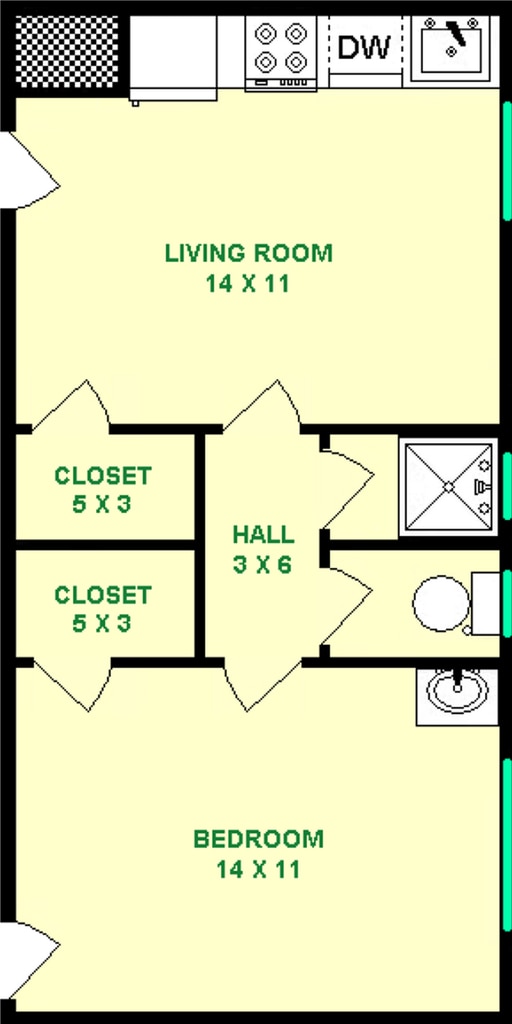 Berners-Lee - Plano 7 Unidad de apartamento: DK-101Modelo de apartamento: Berners-Lee$890Estudio, 1 Baño, 470 sq ftDisponible August 1, 2026![]()
