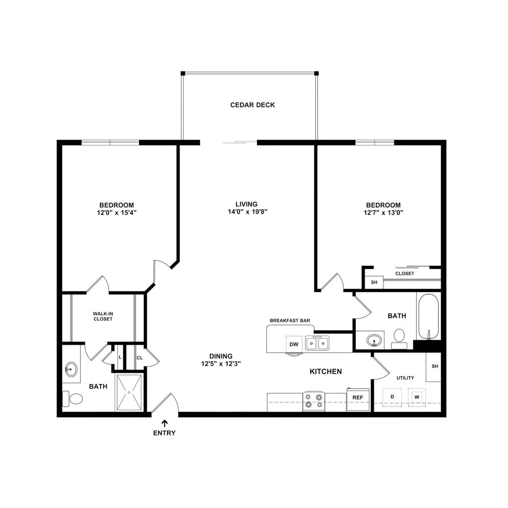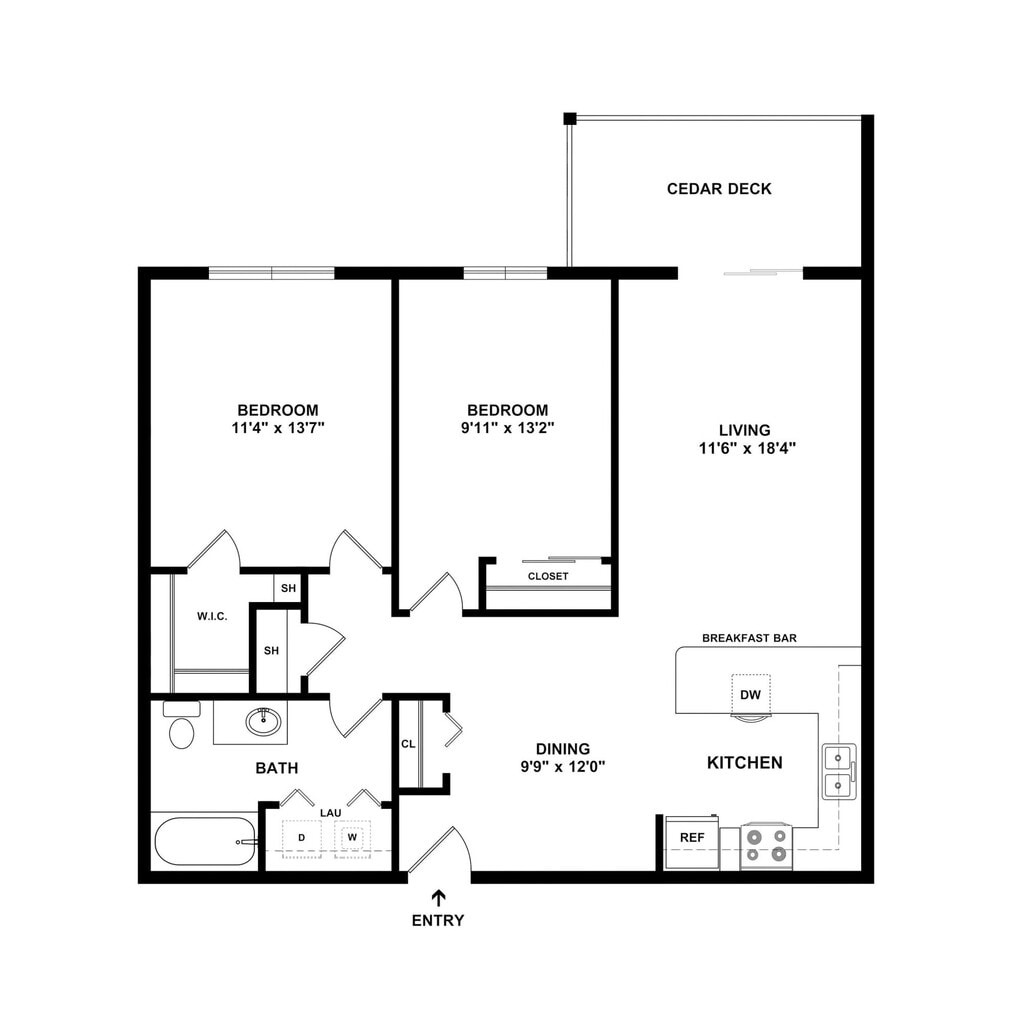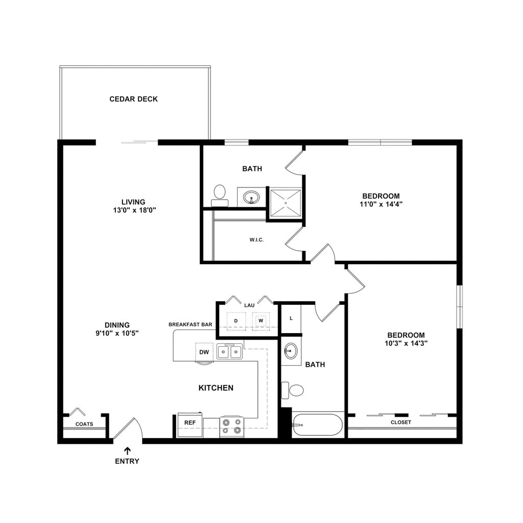 2 Dormitorios, 2 Baños, 1153 pies²El más grandeEsta opción tiene las unidades más grandes para este modeloGalería del Modelo