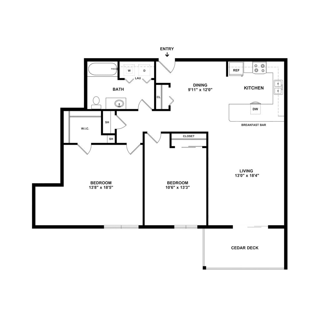 Modelo de apartamento: C$1,1152 Dormitorios, 2 Baños, 1090 sq ftNo Disponible![]()