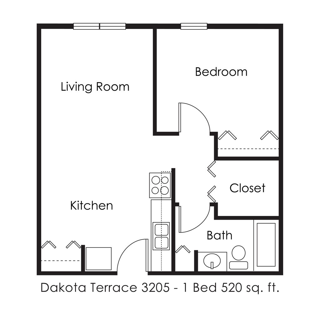 Modelo de apartamento: 1 Bed 1 Bath | 520 sqft1 Dormitorio, 1 Baño, 520 sq ftNo Disponible1 Bed 1 Bath | 520 sqft - Plano 1 1 Bed 1 Bath | 540 sqft