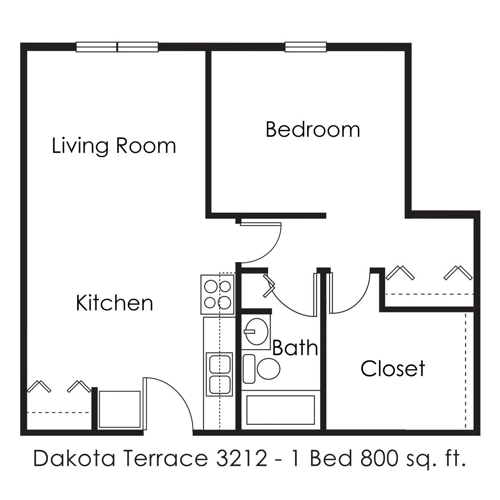 1 Dormitorio, 1 Baño, 800 pies²El más grandeEsta opción tiene las unidades más grandes para este modeloGalería del Modelo
