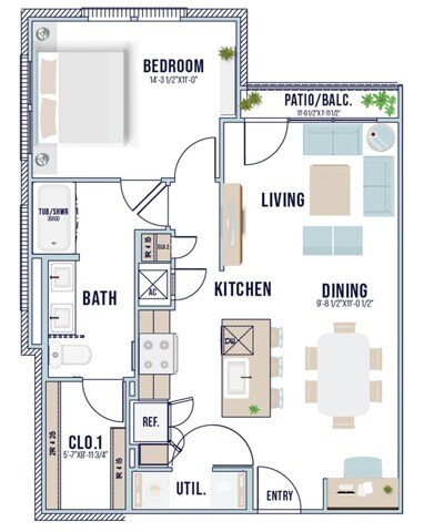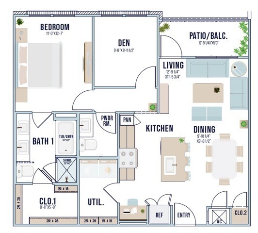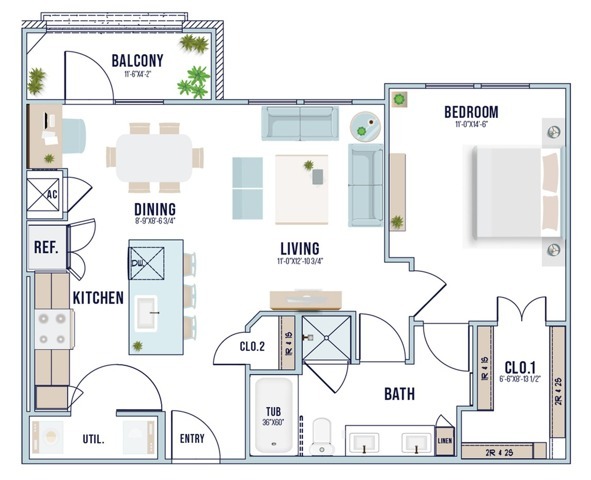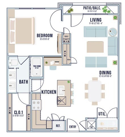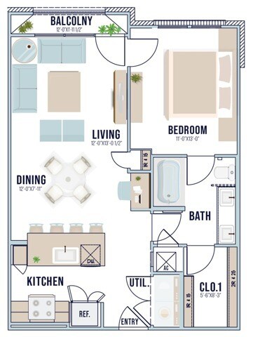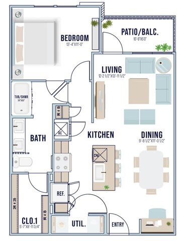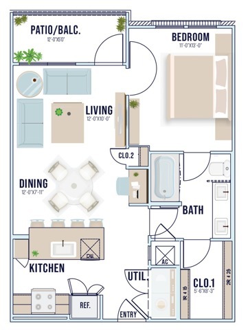 Modelo de apartamento: A1Desde $1,3601 Dormitorio, 1 Baño, 661 sq ftDisponible Ahora![]()