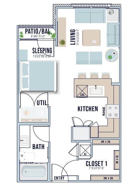 Modelo de apartamento: A7Llame para Precios1 Dormitorio, 1 Baño, 860 sq ftNo Disponible![]()