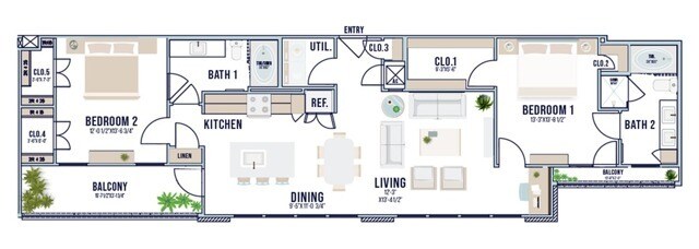 Modelo de apartamento: A5Desde $1,5201 Dormitorio, 1 Baño, 799 sq ftDisponible January 8, 2026![]()