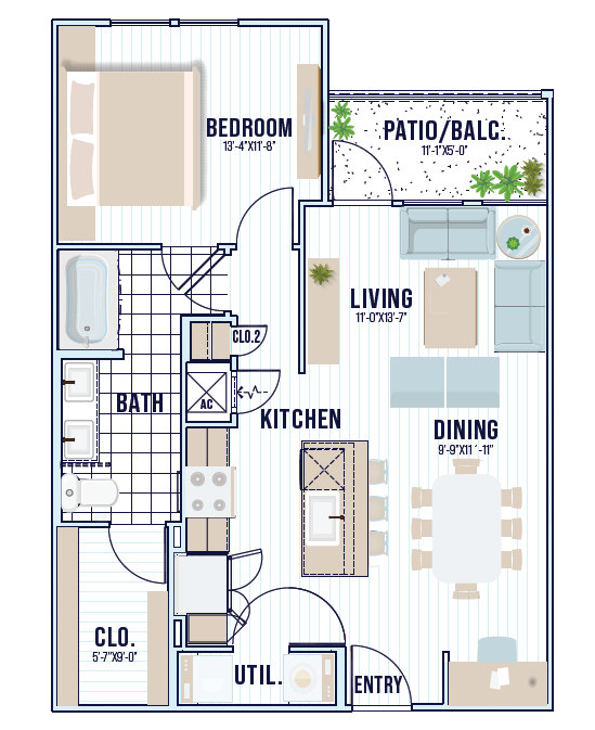 Modelo de apartamento: A5Desde $1,4601 Dormitorio, 1 Baño, 777 sq ftDisponible Ahora![]()