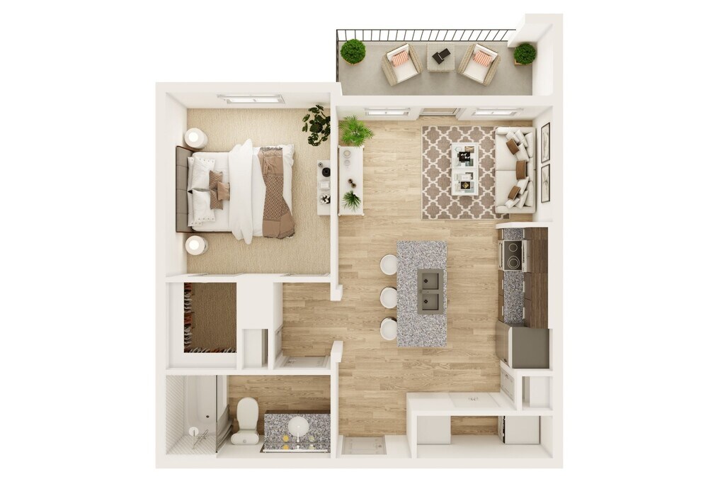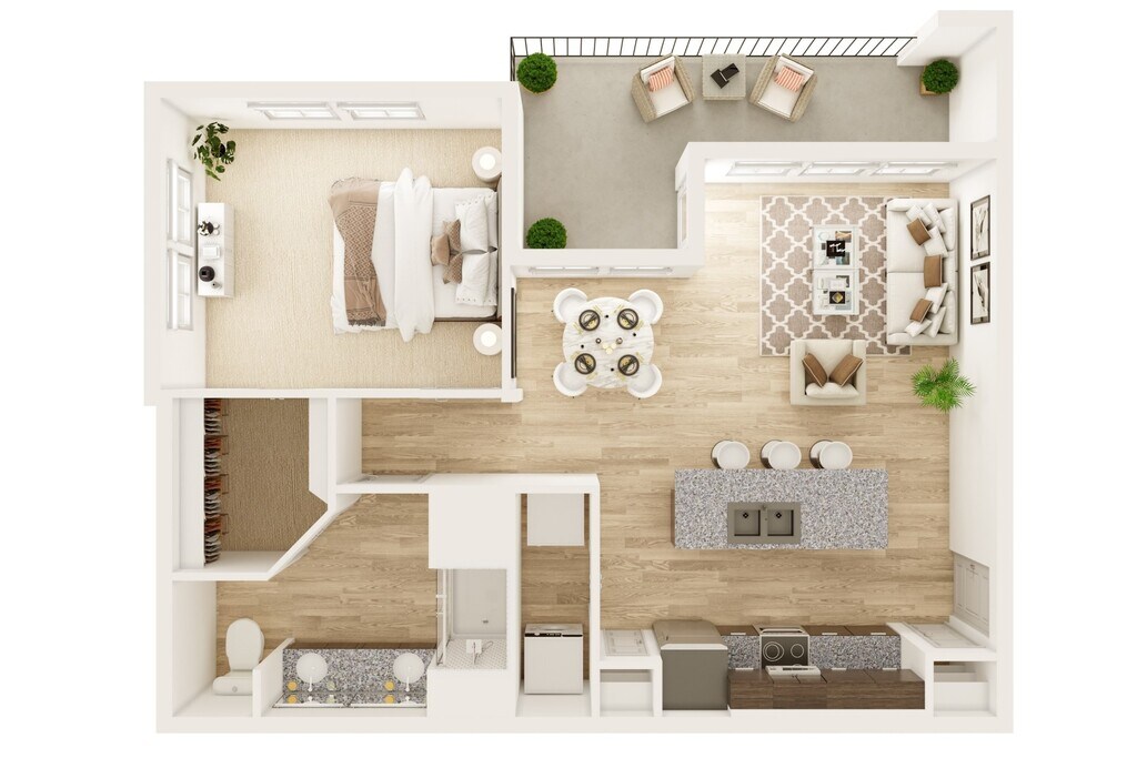 1 Dormitorio, 1 Baño, 619 pies²Disponible AhoraGalería del Modelo