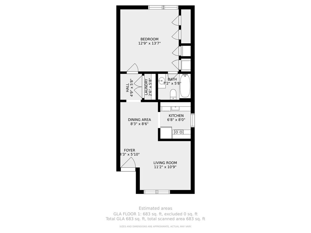 1 Dormitorio, 1 Baño, 683 pies²Galería del Modelo