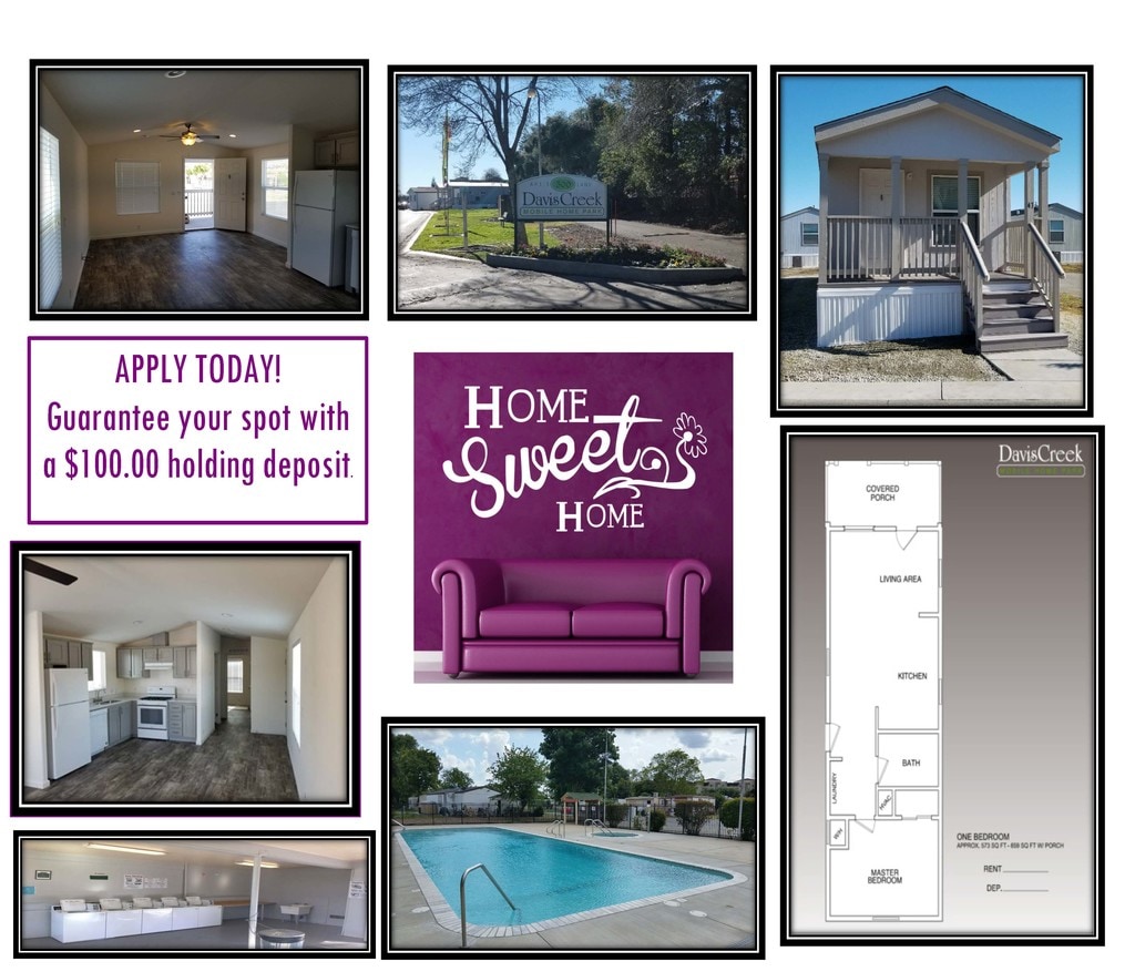 Davis Creek Mobile Home Park es un entorno de alojamiento único donde ofrecemos apartamentos y casas móviles en alquiler. Davis Creek ofrece apartamentos de una habitación y un baño, y dos habitaciones y un baño y casas móviles de dos habitaciones y dos baños en alquiler. Puedes disfrutar de nuestra hermosa piscina y un relajante spa, y también ofrecemos una lavandería en el lugar. Puedes disfrutar de actividades planificadas llevadas a cabo por la Administración en nuestra casa club en el lugar. La Administración está disponible de lunes a viernes, de 8 a. m. a 5 p. m. para ayudarte con tus necesidades. Davis Creek también ofrece mantenimiento de emergencia las 24 horas para nuestros inquilinos.