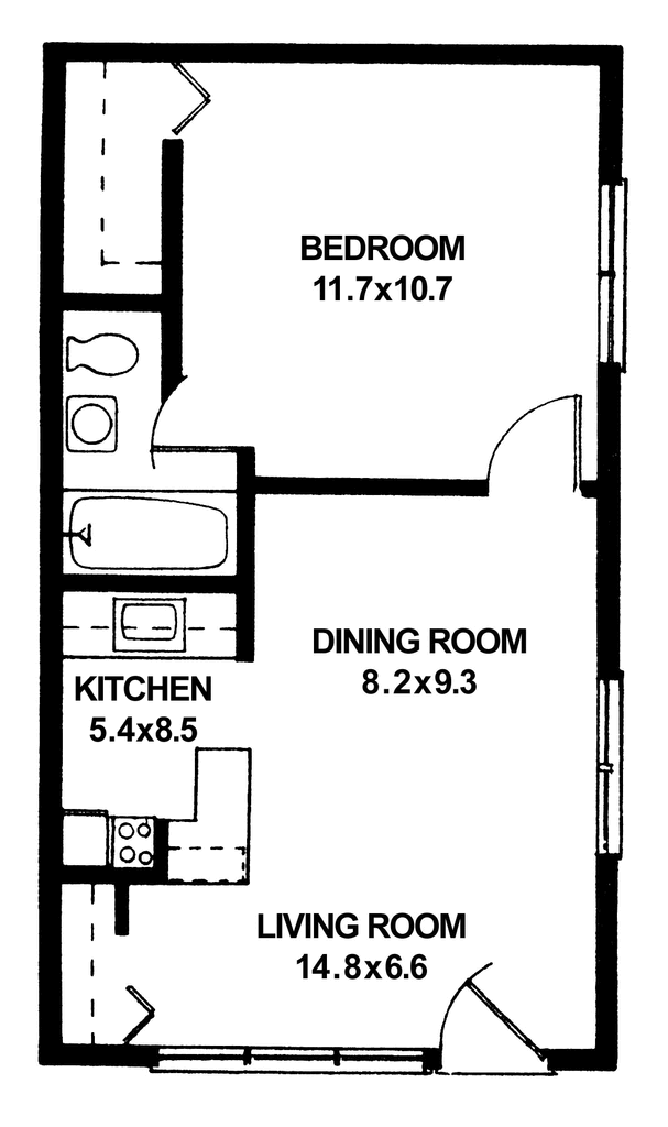 Modelo de apartamento: 311 Como Street$1,6001 Dormitorio, 1 Baño, 700 sq ftDisponible prontoPlanosFotos![]()