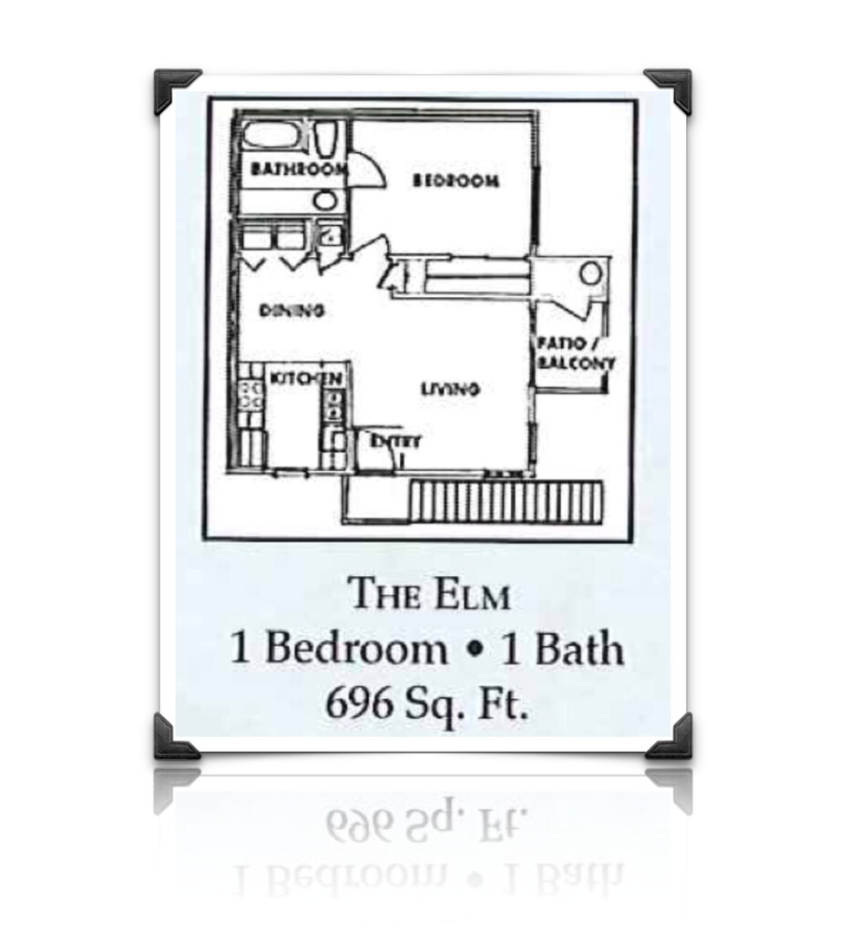 Unidad de apartamento: H-54Modelo de apartamento: The Elm1 Dormitorio, 1 Baño, 696 sq ftDisponible December 15, 20252 Dormitorios