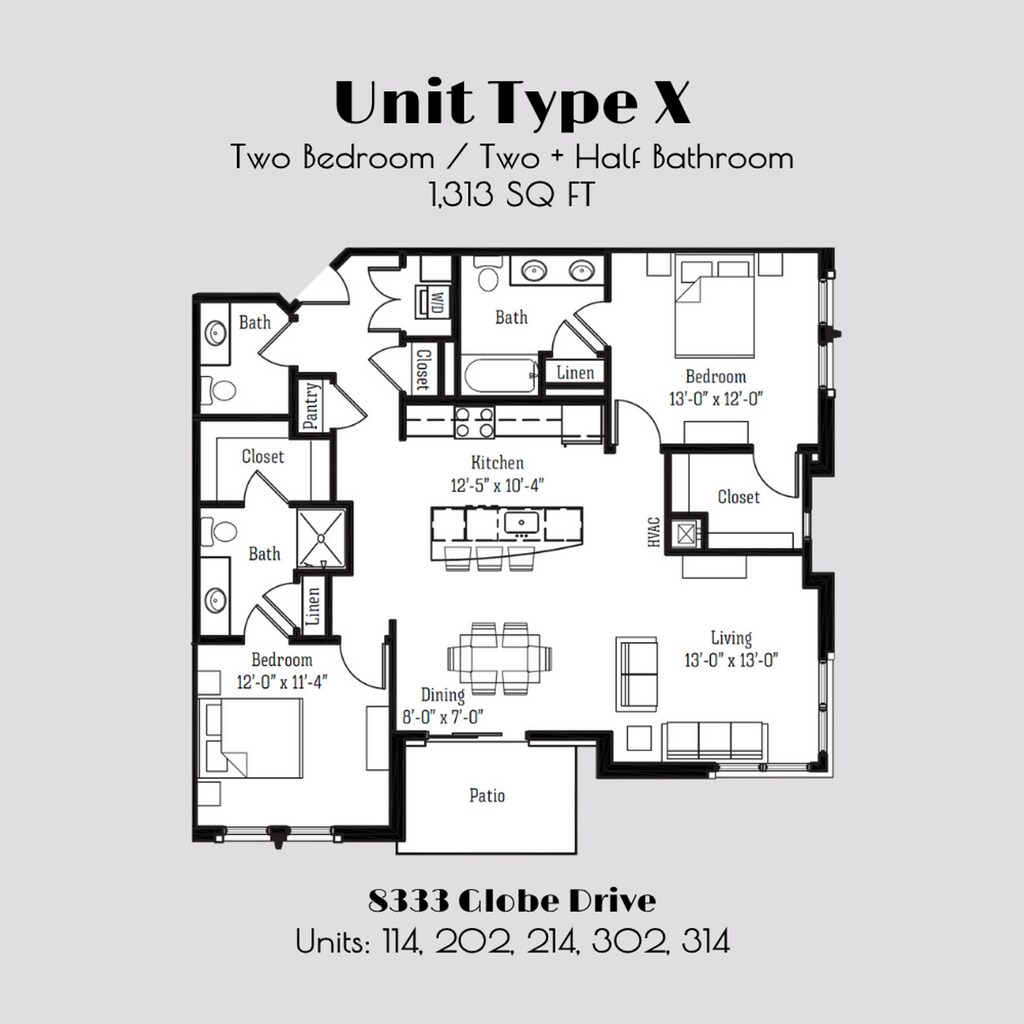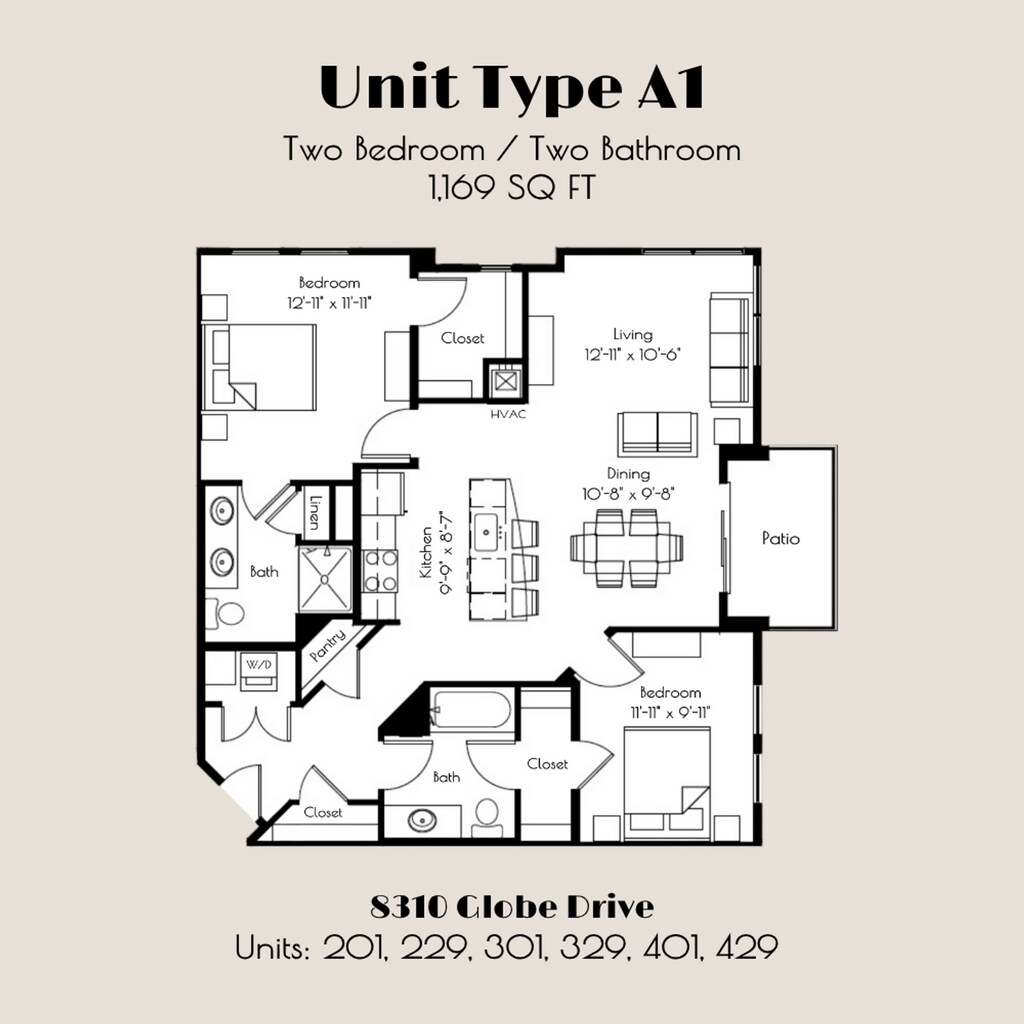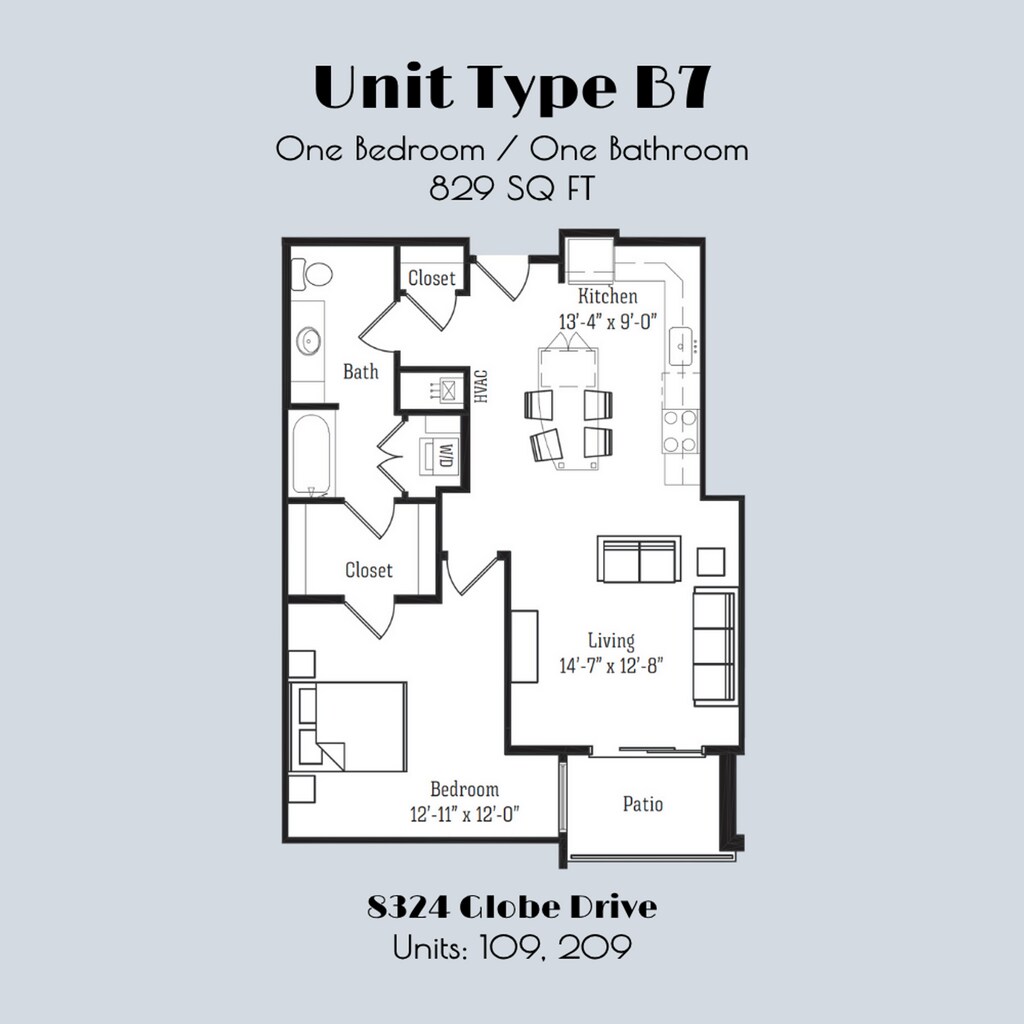 8328 T Studio (104, 204) - Plano 1 Unidad de apartamento: 8328 Globe Drive - 104Modelo de apartamento: 8328 T Studio (104, 204)$1,600Estudio, 1 Baño, 548 sq ftDisponible Ahora![]()