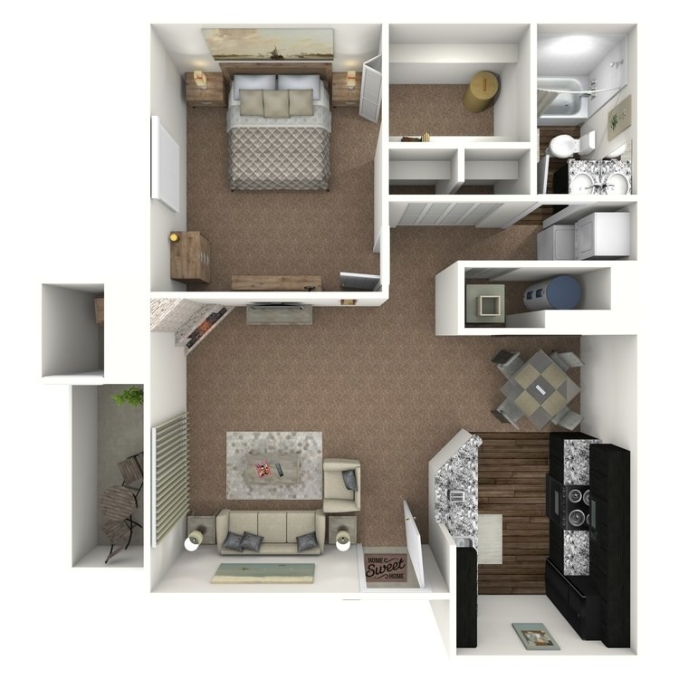 1 Dormitorio, 1 Baño, 736 pies²Disponible AhoraGalería del Modelo