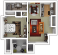 Modelo de apartamento: Residence 1 UpgradedLlame para Precios1 Dormitorio, 1 Baño, 685 sq ftNo Disponible![]()