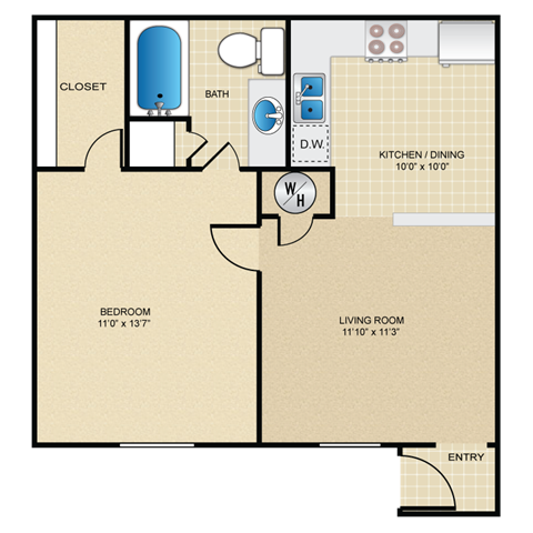 1 Dormitorio, 1 Baño, 610 pies²Disponible Oct 10El más grandeEsta opción tiene las unidades más grandes para este modeloGalería del Modelo