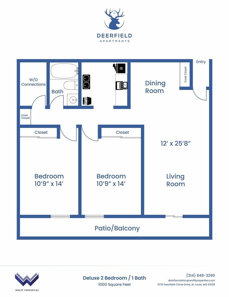 Deerfield Apartments se encuentra en el Barrio Concord y el código postal 63128 de St. Louis, MO. Esta comunidad está gestionada profesionalmente por Mary R Wolff Real Estate Management Company