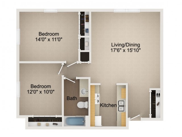 2 Dormitorios, 1 Baño, 866 pies²Galería del Modelo