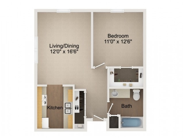 1 Dormitorio, 1 Baño, 585-633 pies²Galería del Modelo