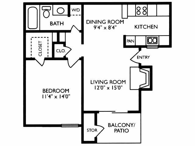 Modelo de apartamento: 1A1 Dormitorio, 1 Baño, 675 sq ftDisponible Ahora![]()
