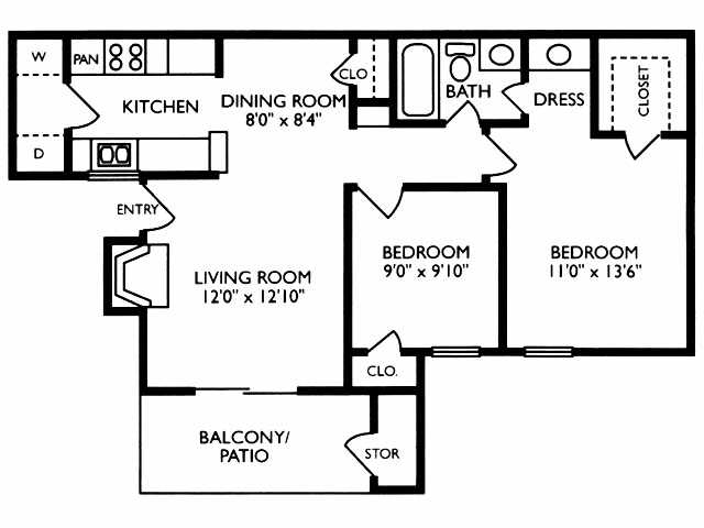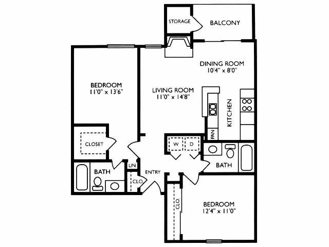 Modelo de apartamento: 2B2 Dormitorios, 2 Baños, 965 sq ftDisponible November 16, 2025![]()
