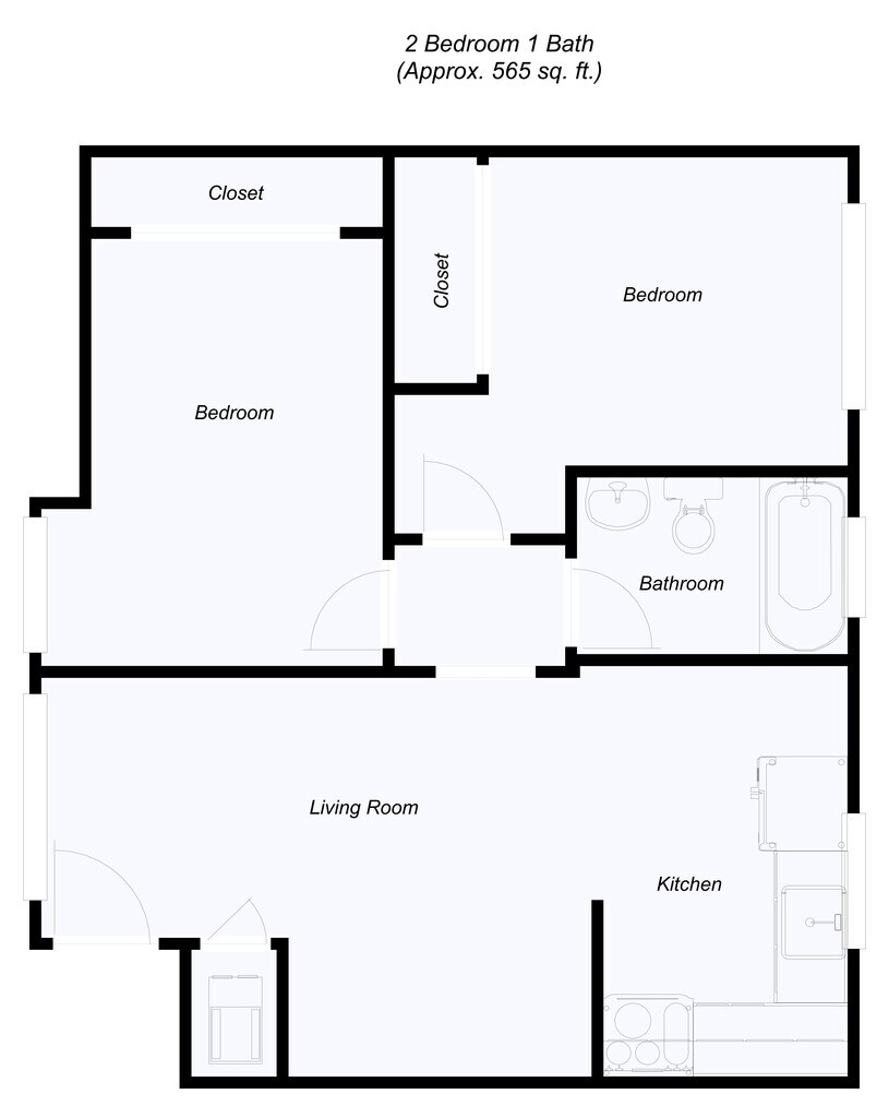 2 Dormitorios, 1 Baño, 565 pies²Galería del Modelo